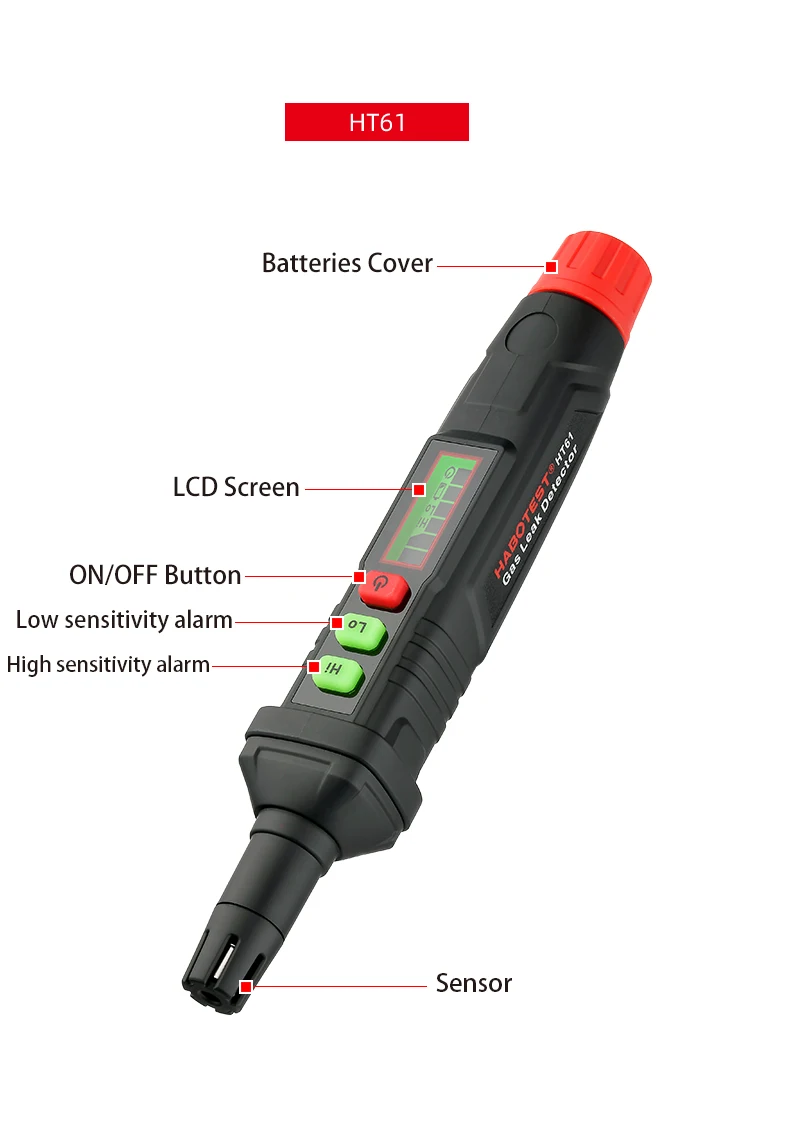 Детектор газа анализатор горючих газов HT61 Ручка Тип Мини умный тестер местоположение утечки Определите измеритель звуковой светильник сигнализация HABOTEST