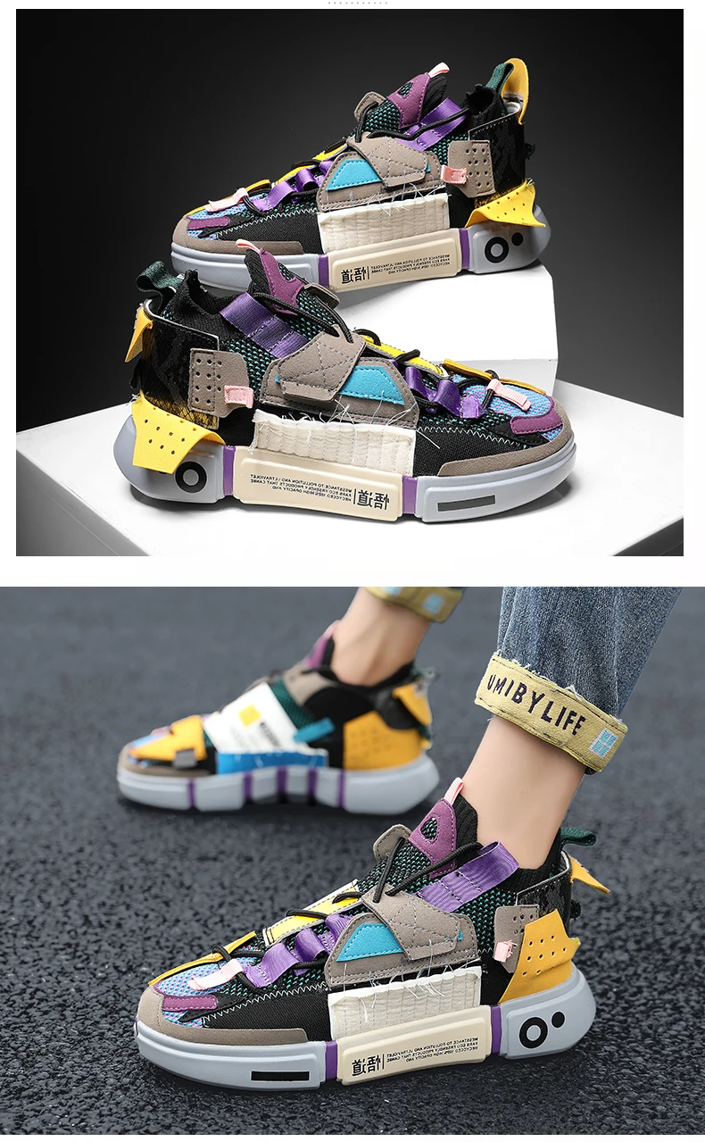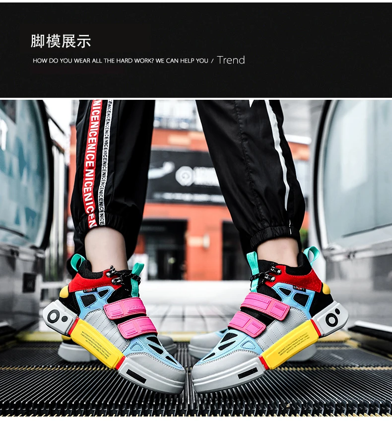 Кроссовки мужские разноцветные, на платформе, с высоким берцем