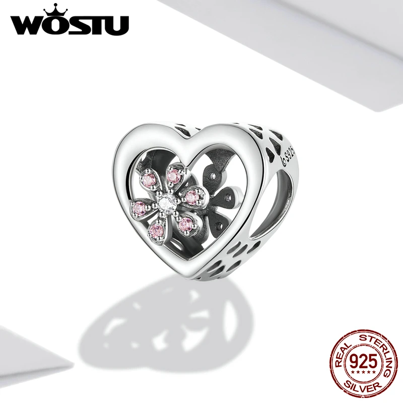 WOSTU Стерлинговое Серебро 925 пробы стиль сердца с радужным цирконием Древо жизни оригинальные бусины подходят для DIY Ожерелье Браслет-шарма для мамы