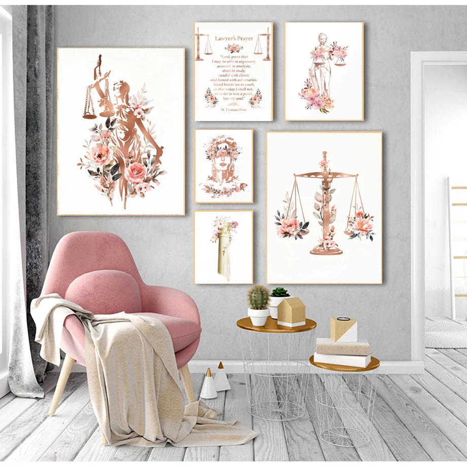 Настенная картина с изображением юриста, школы, богини, веса, молотка, Художественная Картина на холсте, плакаты и принты, настенные картины для декора гостиной