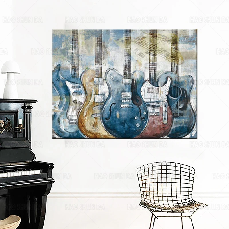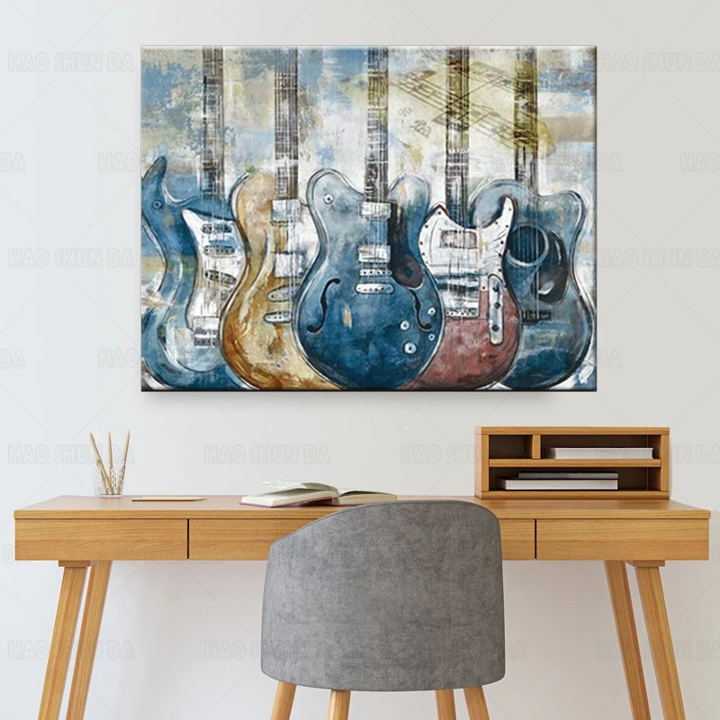 Настенная картина на тему гитары, современные синие холсты с музыкальными мотивами, Картина на холсте, искусство для спальни, гостиной, офиса, Настенный декор