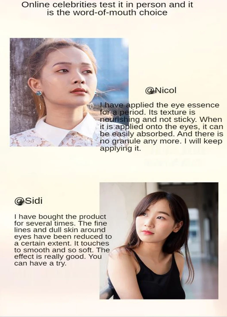 EffectFine Lines, Eye Wrinkle, Eye Bags, Dark Circles, etc
