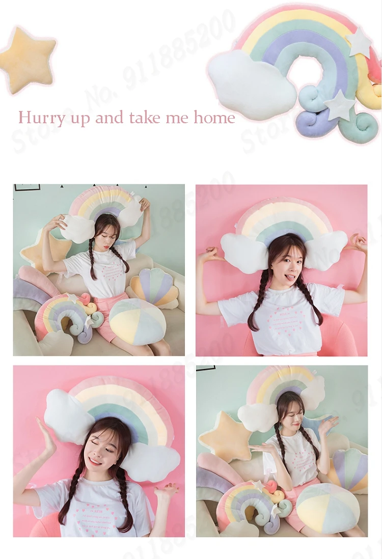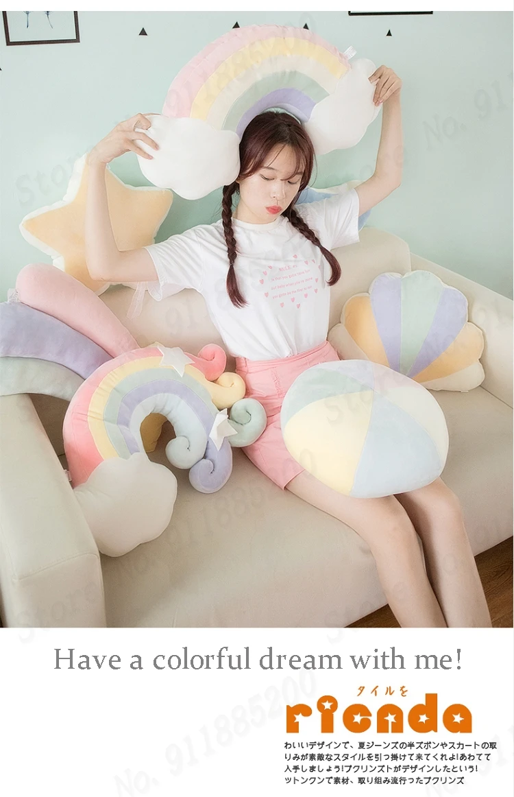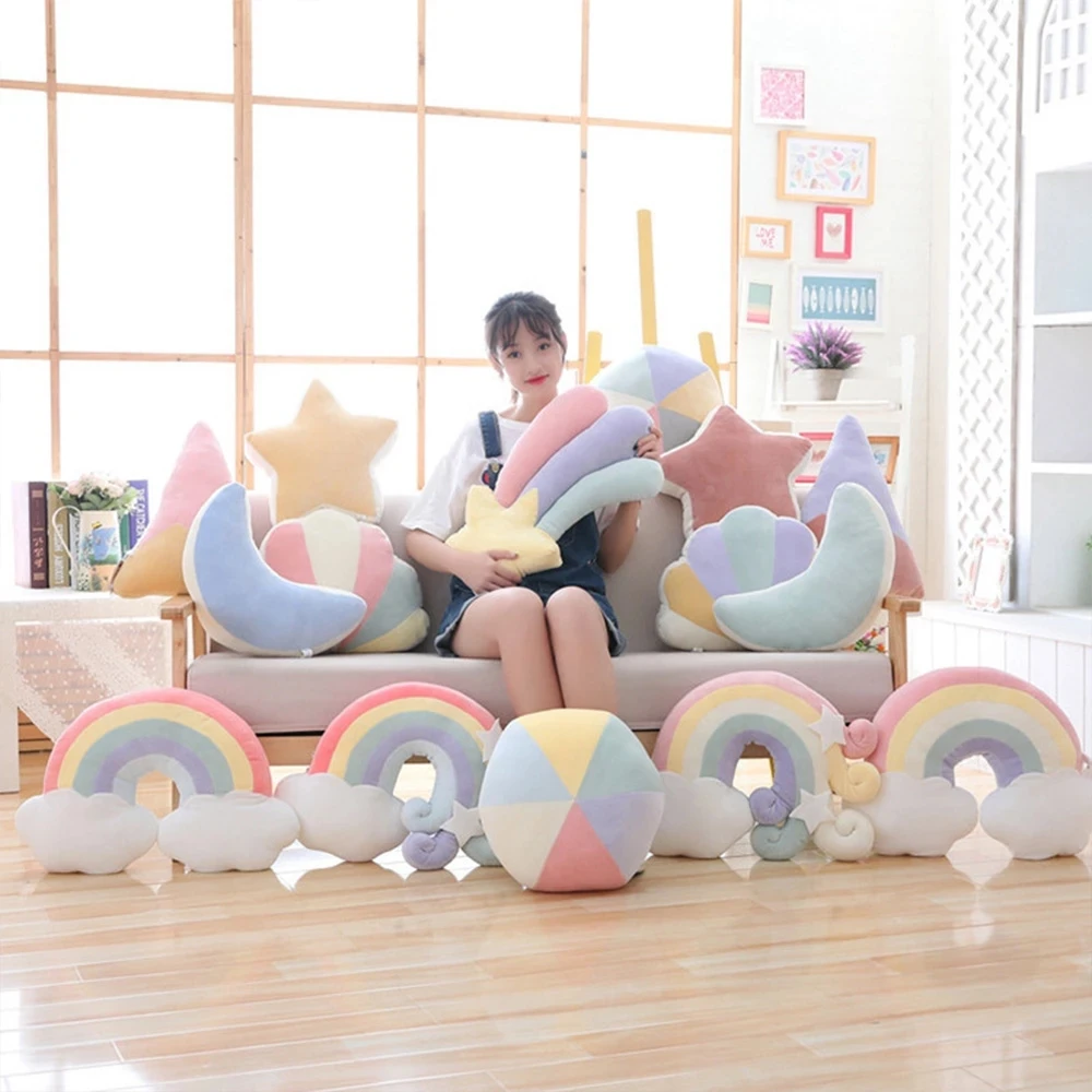 Плюшевые подушки в виде неба, яркие цвета, радуга, облако, звезда, искусственное сиденье, декоративная подушка для детей, подарок для дома, гостиной, офиса