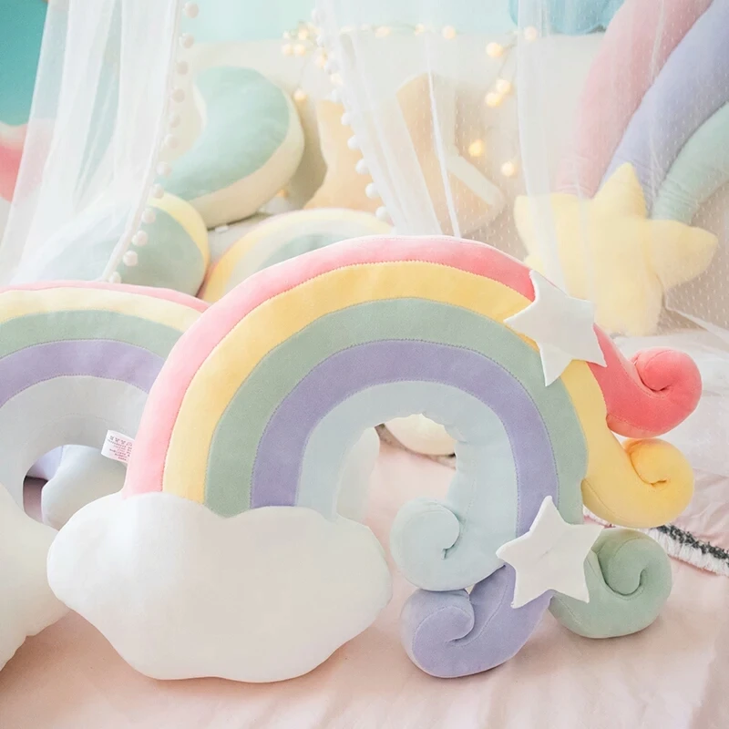 Плюшевые подушки в виде неба, разноцветные, Радужные облака, звезды...