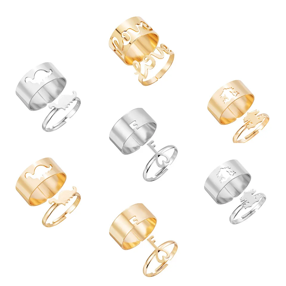 Парные кольца в готическом стиле с динозавром для женщин, Винтажные Ювелирные изделия в стиле панк, регулируемые открытые кольца с животными, черный цвет, 2 шт.