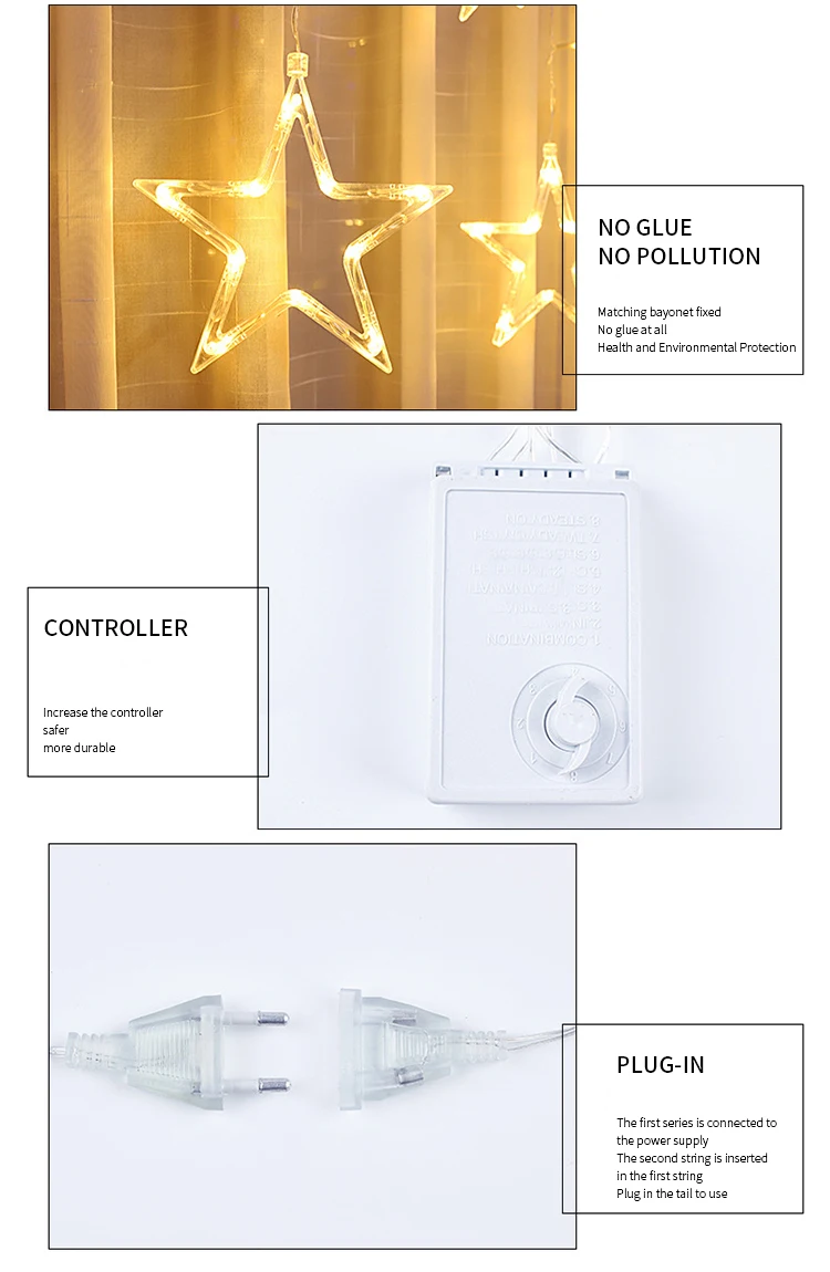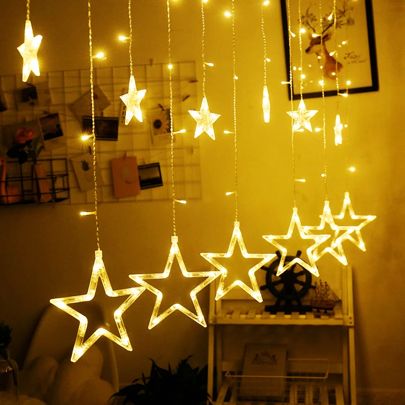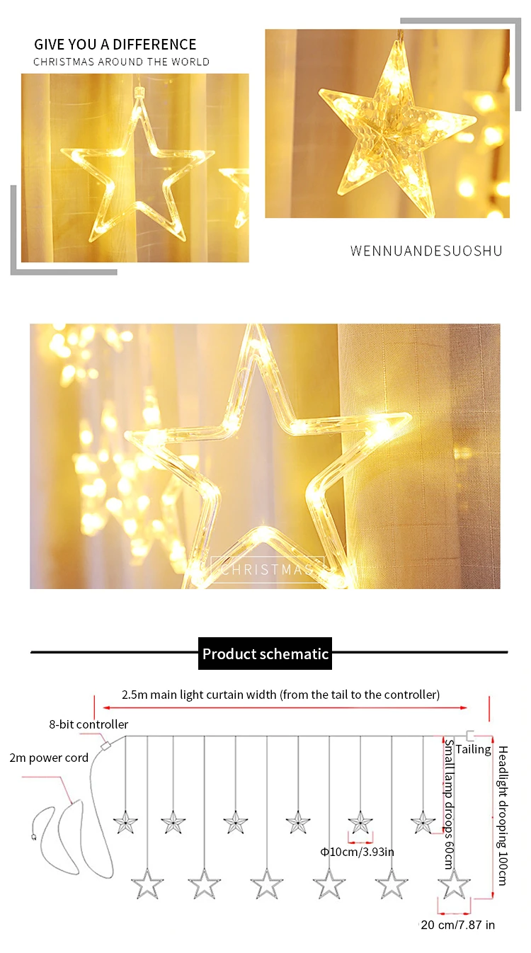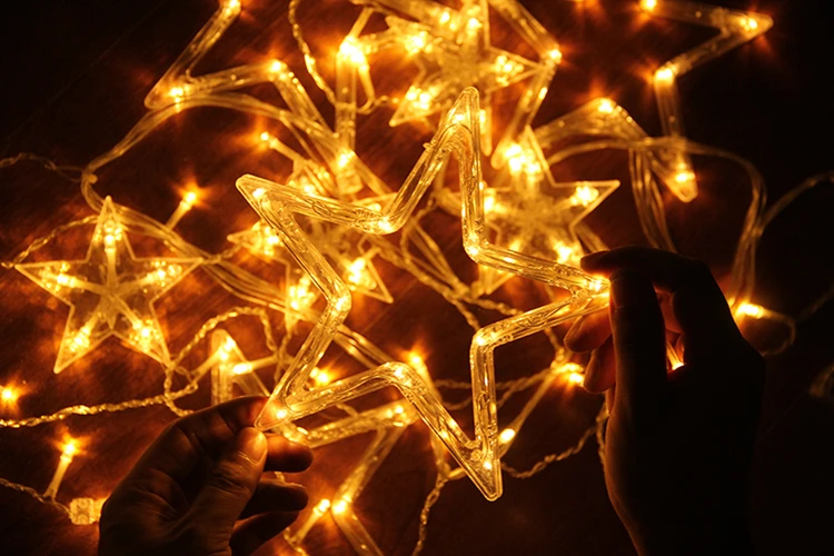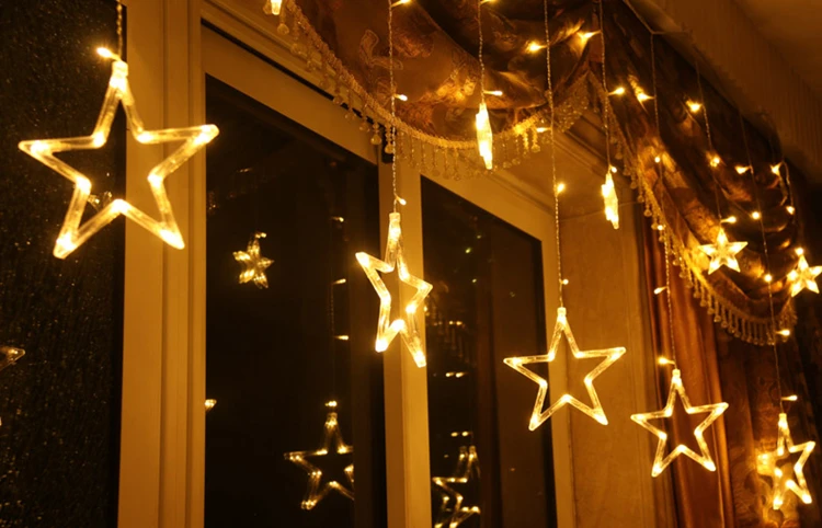 2,5 м Рождественский фестиваль светодиодные фонари в форме звезды занавес сосулька струнные светильники Droop 220V садовая уличная домашняя декоративная