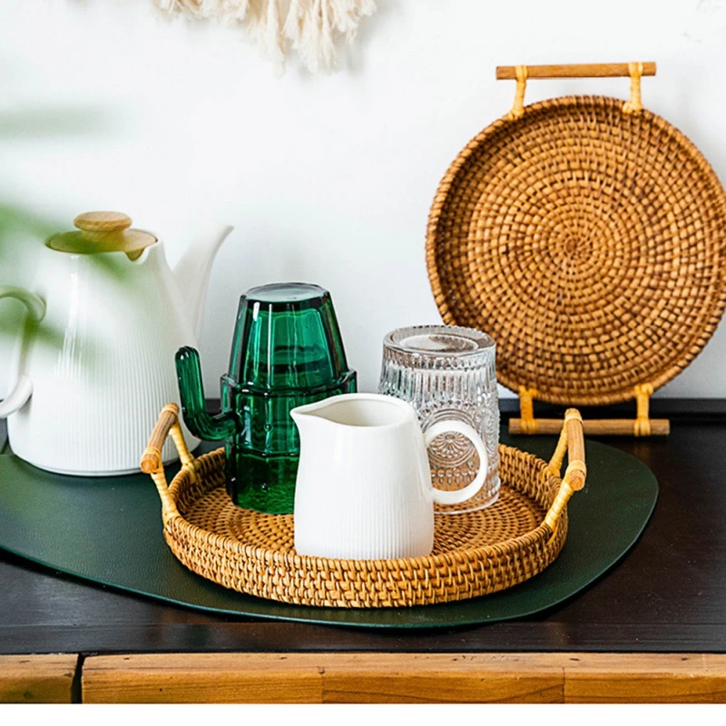 Корзина из ротанга ручной работы с деревянной ручкой, лотки для хранения фруктов и еды, чайные лотки, три размера