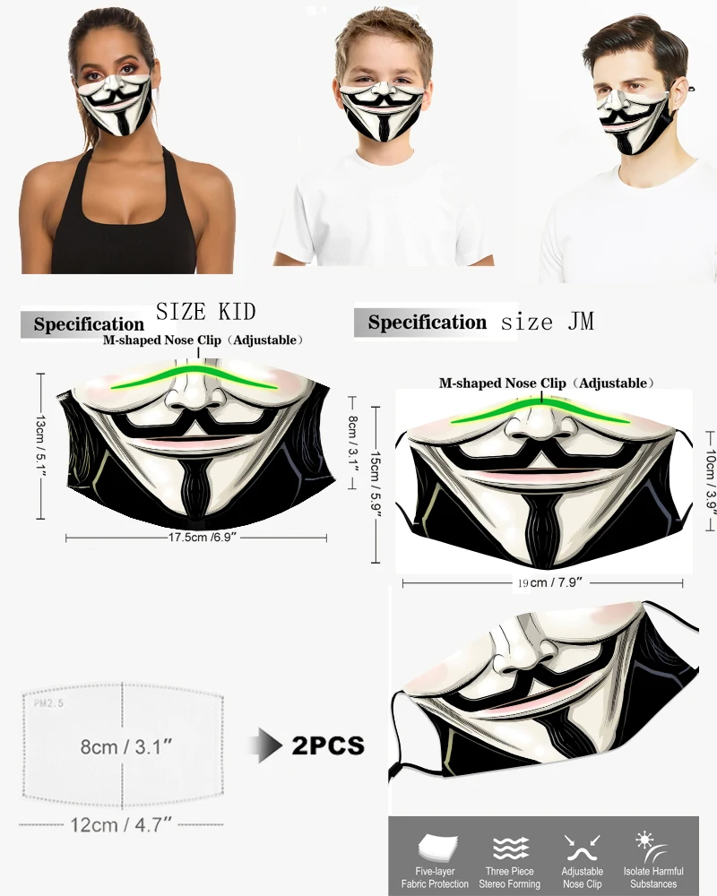 Многоразовая моющаяся Тканевая маска для косплея с 3D принтом маски...