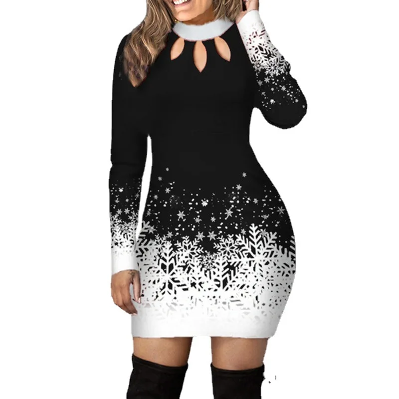 Рождественские платья для женщин, платье мини с длинным рукавом и с...
