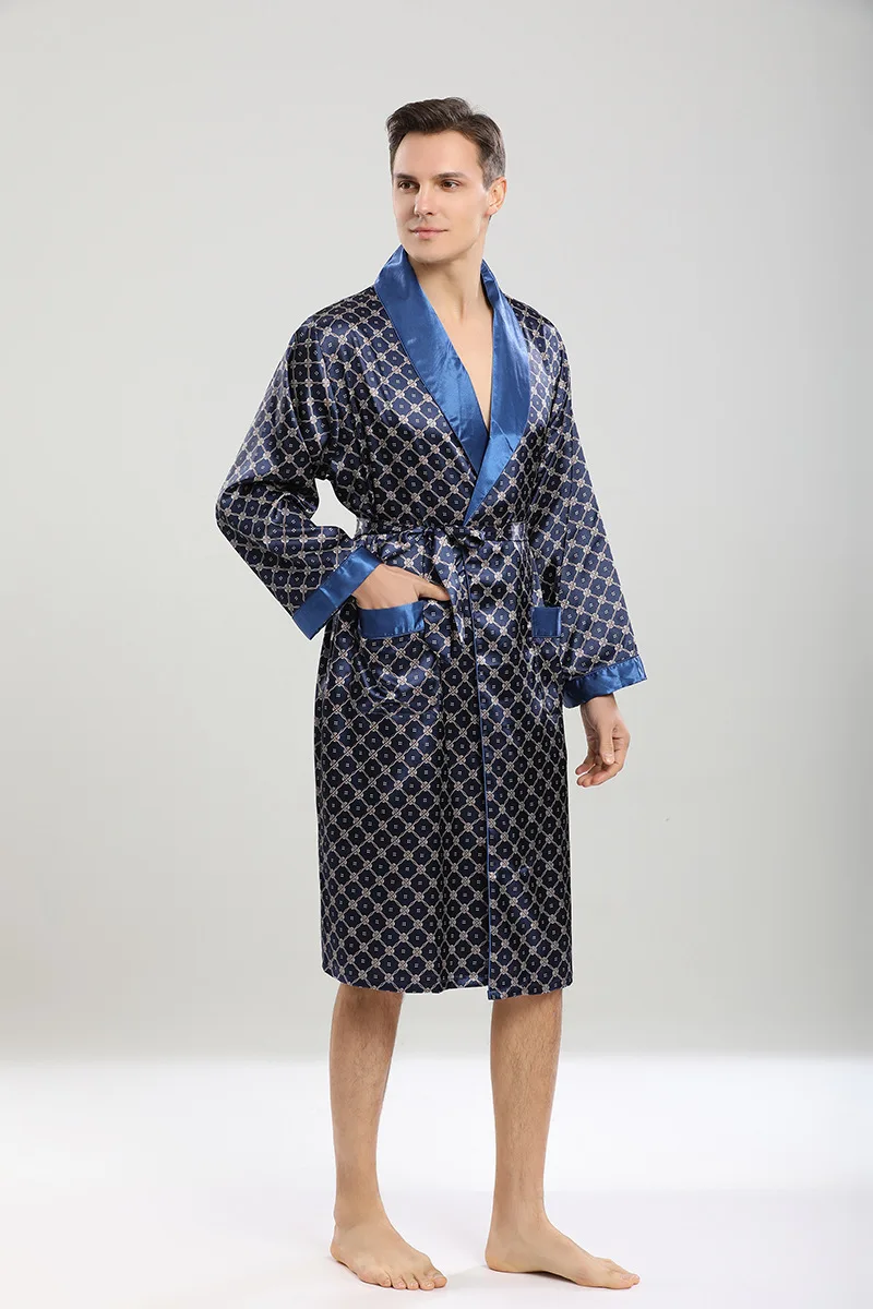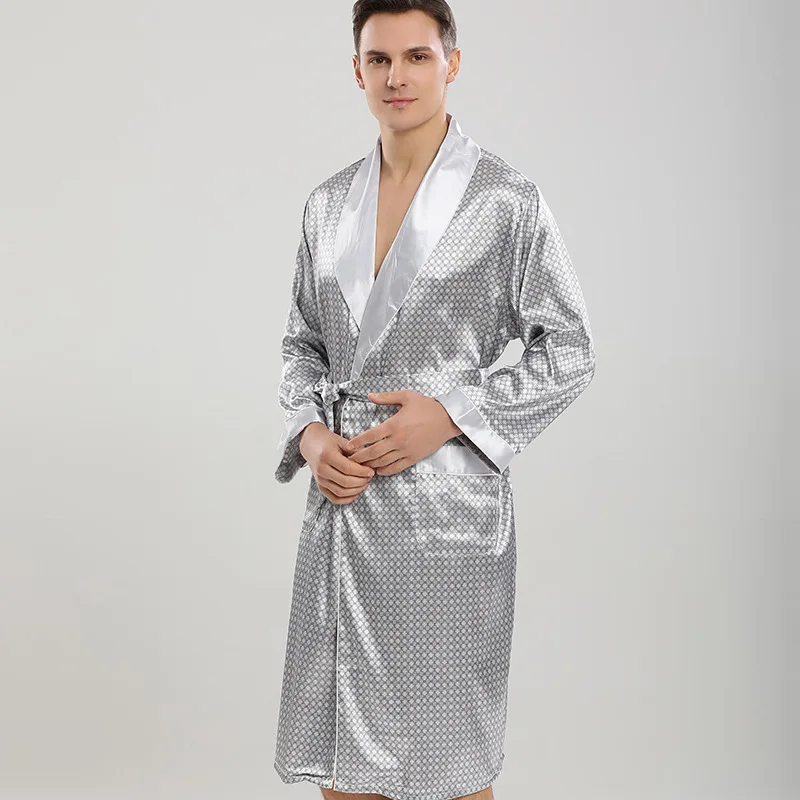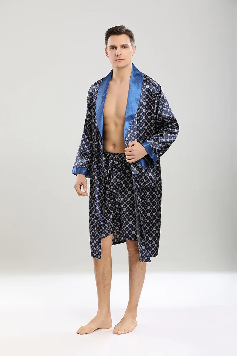 Комплект Мужской Атласный из 2 предметов, шелковый халат с длинным ...