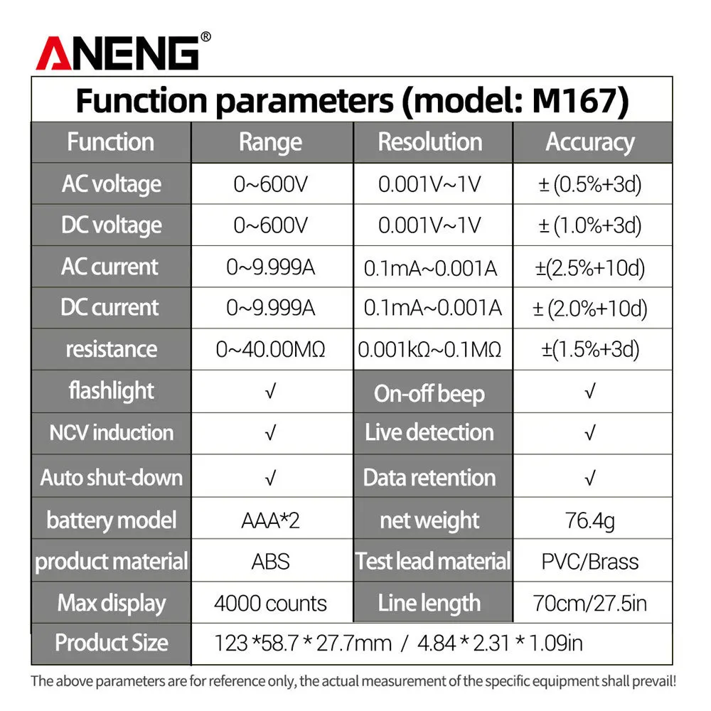 ANENG M167 цифровой мини-мультиметр ACDC Электрический тестер приборов Авто мультиметр True Rms транзистор NCV мультиметр