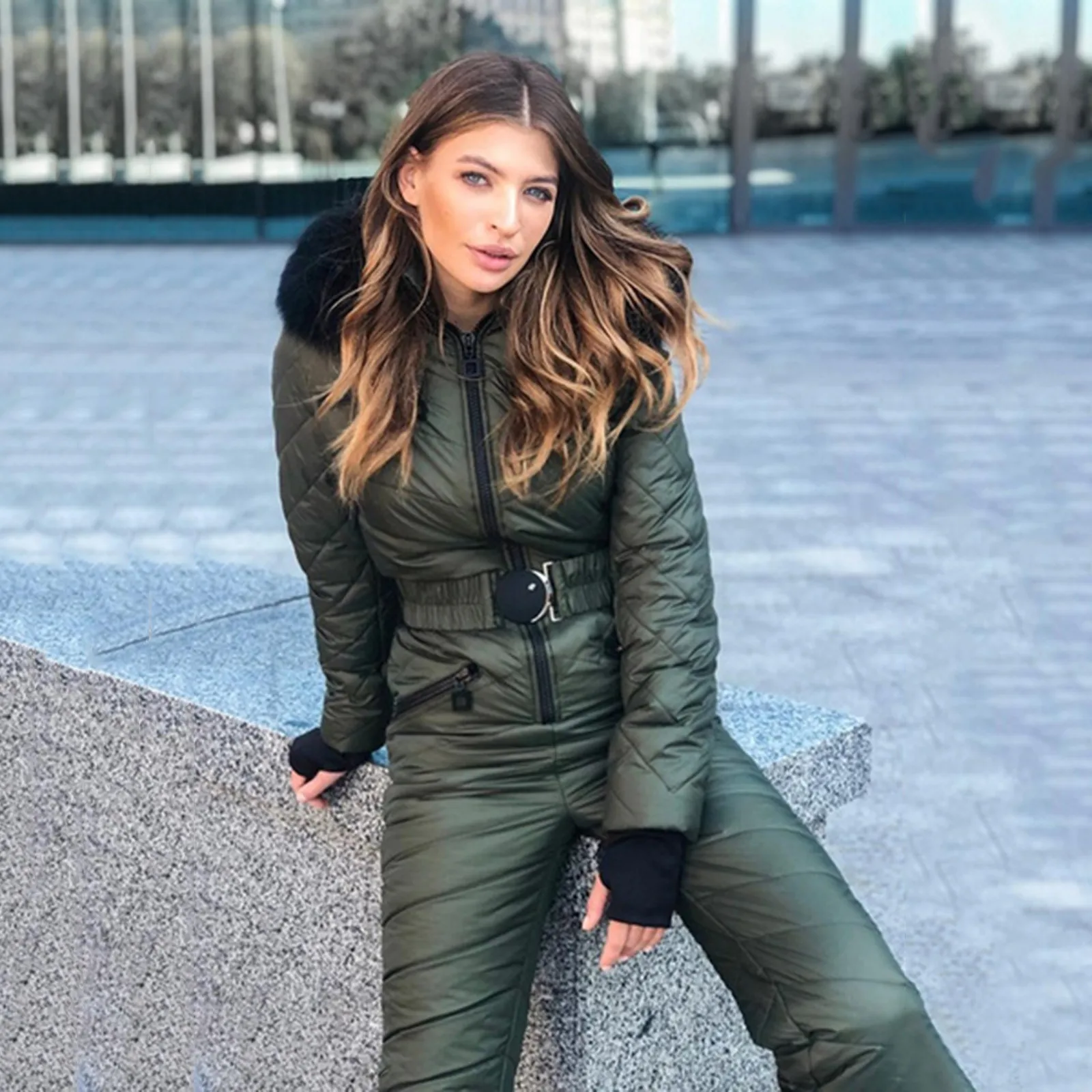 Женский цельный лыжный комбинезон, Модный повседневный плотный теплый комбинезон для сноуборда, комбинезон с поясом, зимний комбинезон на молнии, комбинезоны, спортивные костюмы D6