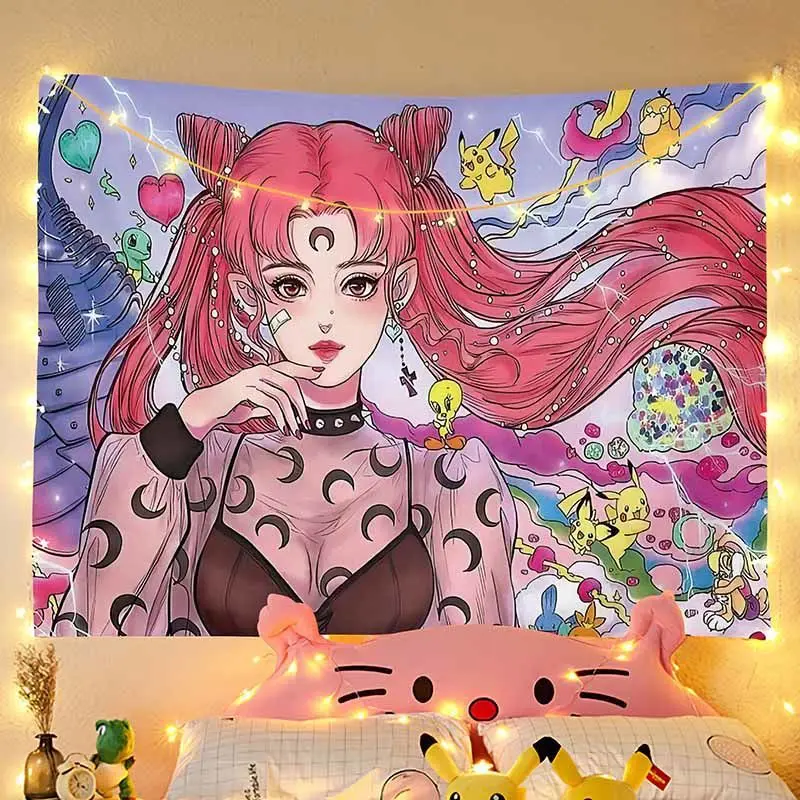 Ткань в стиле ретро с изображением моряка Мун для стен, для девушек, спальни, прикроватный фон, ткань для ремонта кабинета, искусственная ткань, Ins гобелен