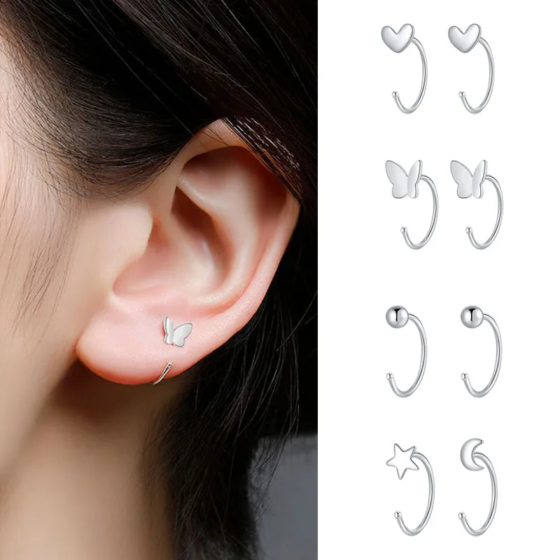 Серебристые геометрические серьги-бабочки для женщин, маленькие открытые серьги-кольца Для Пирсинга Ушей, ювелирные изделия для девочек