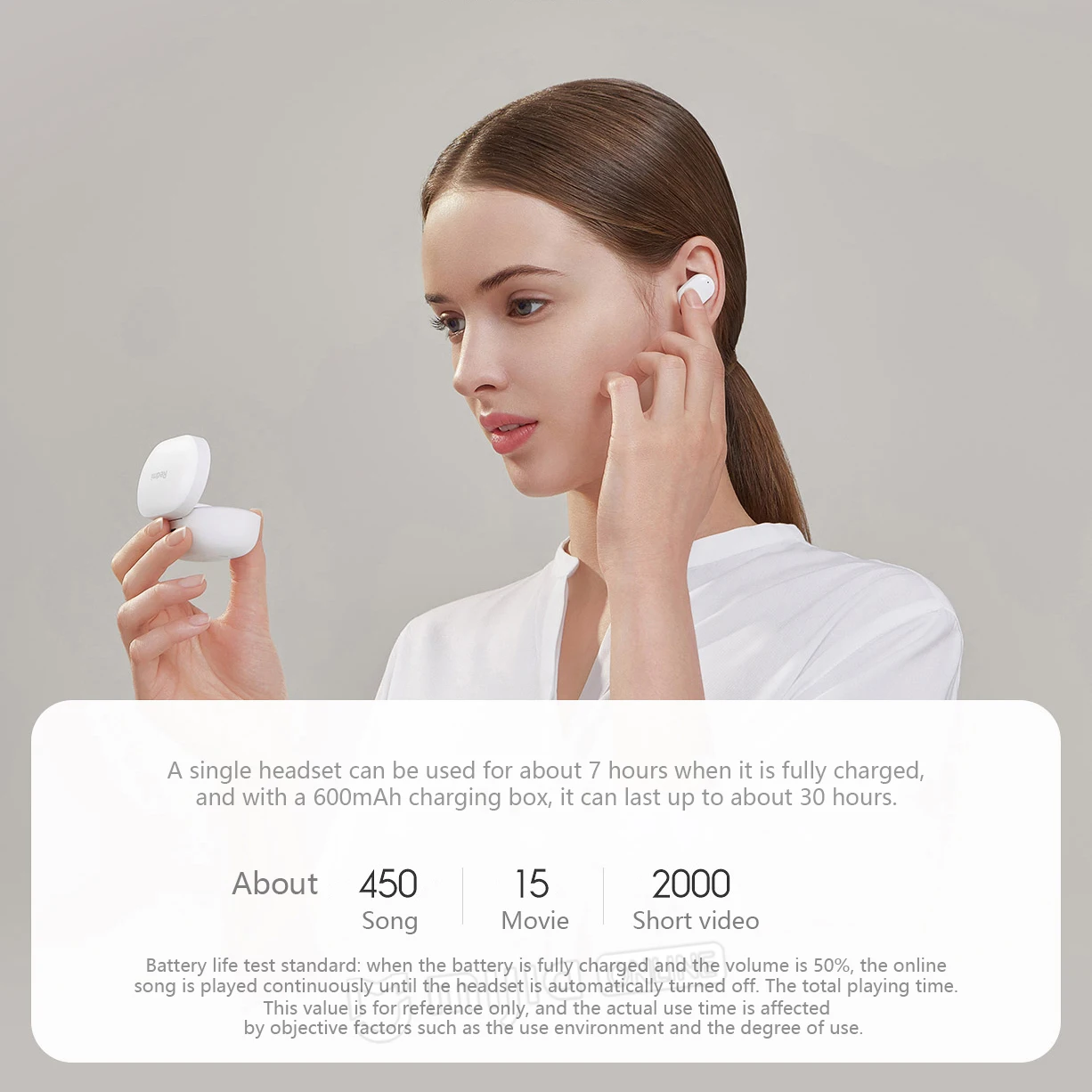 Одна гарнитура используется для полной зарядки около 7 часов, а с зарядным устройством емкостью 600 мА · ч она может работать до 30 часов. (Стандарт проверки срока службы батареи: когда аккумулятор полностью заряжен и объем составляет 50%, онлайн-песня воспроизводится непрерывно до тех пор, пока гарнитура не выключится автоматически. Общее время игры.) Это значение только для справки, и фактическое время использования зависит от объективных факторов, таких как среда использования и степень использования.