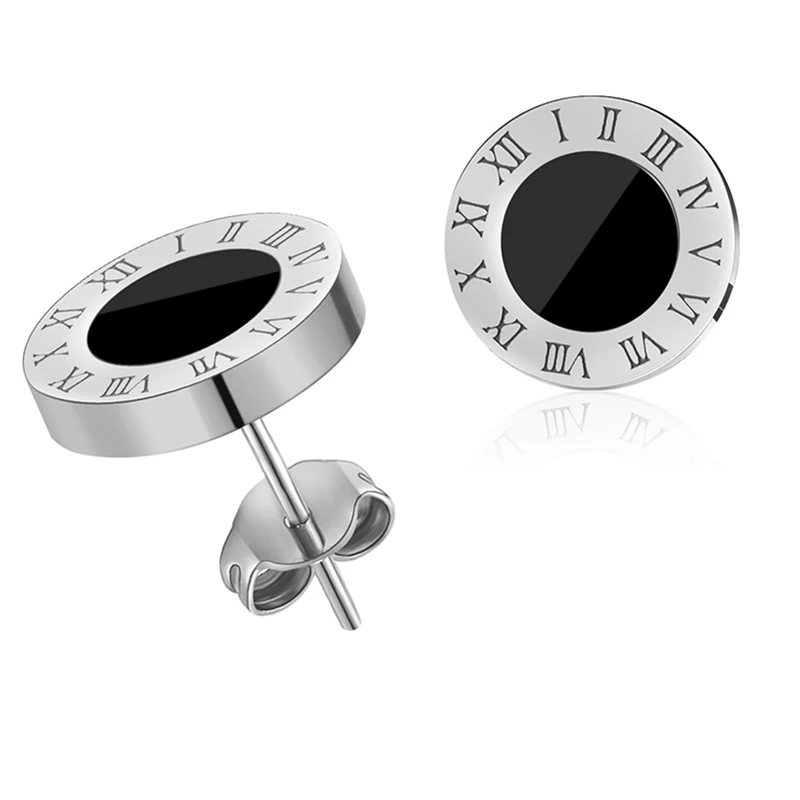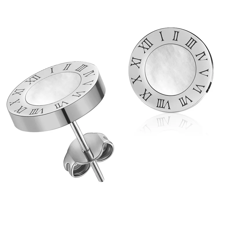 Женские круглые серьги-гвоздики, из нержавеющей стали, с римскими ц...