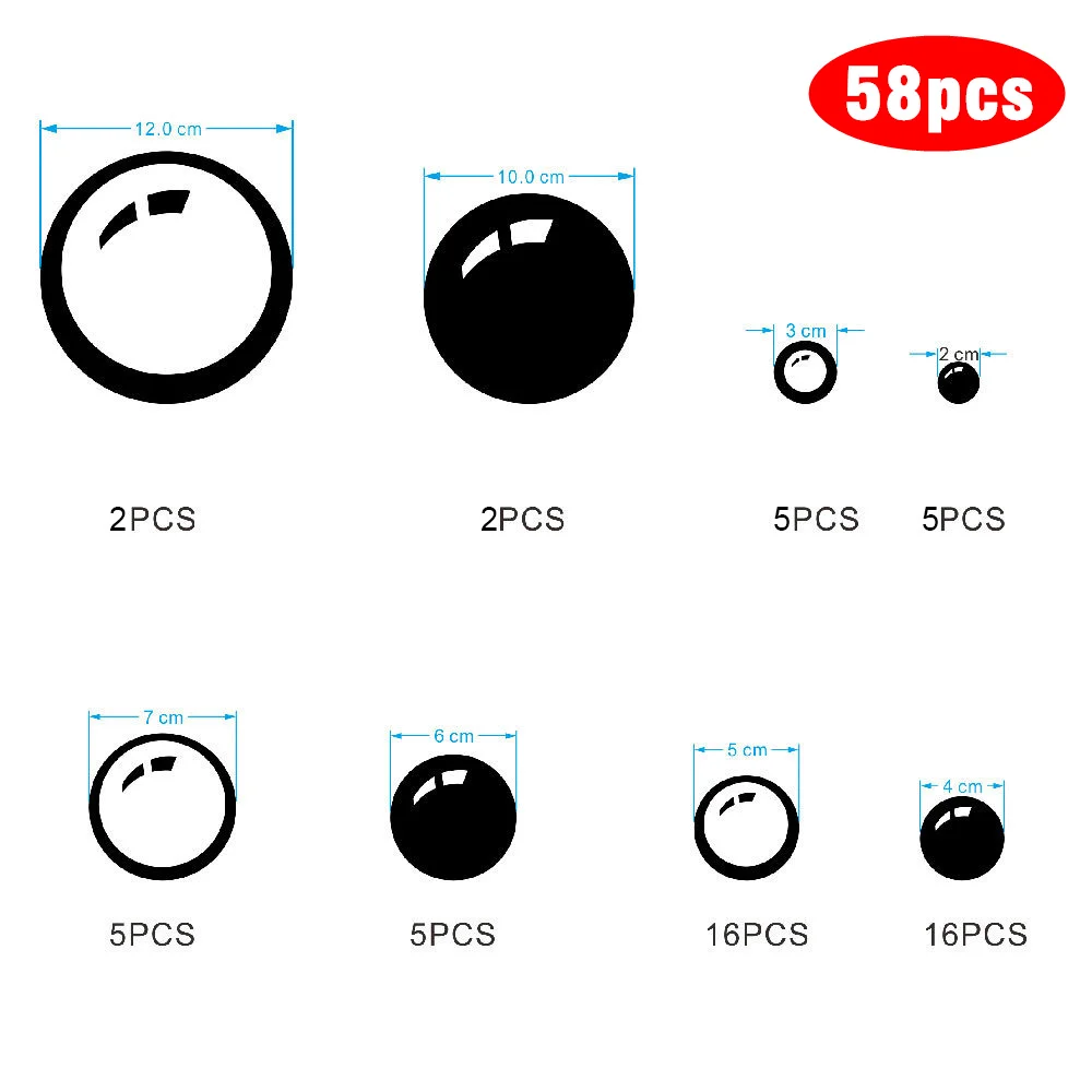 58 шт., зеркальные 3D наклейки на стену с пузырьками