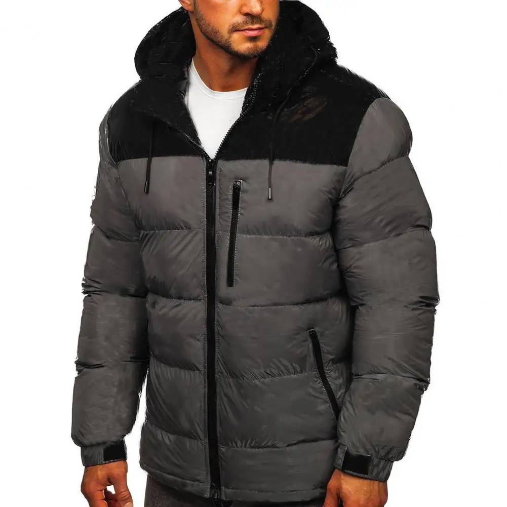Мужской пуховик контрастных цветов, теплый толстый кардиган с капюшоном и толстой подкладкой, верхняя одежда, зима 2021