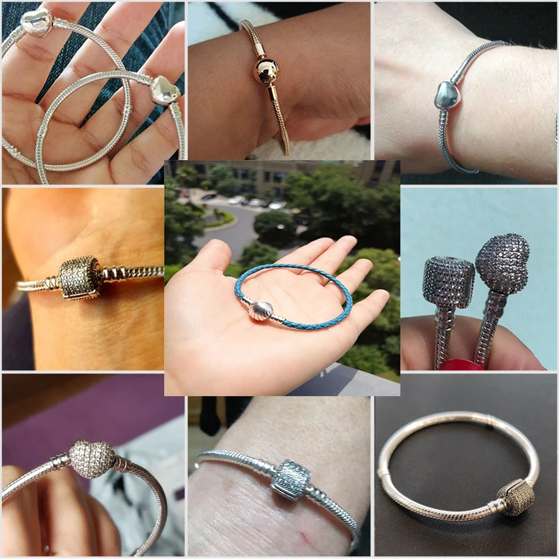 Женский браслет из серебра 925 пробы, с застежкой в виде сердца