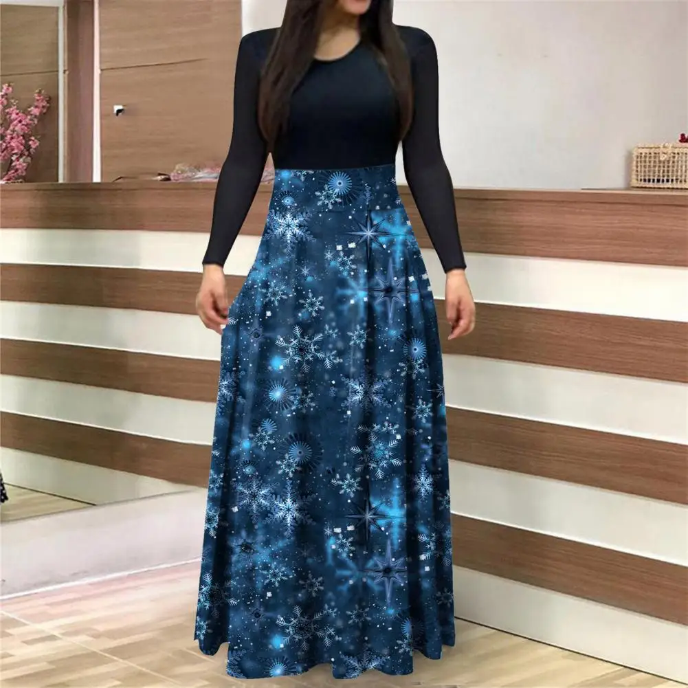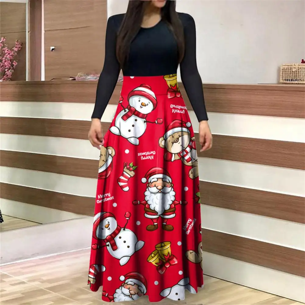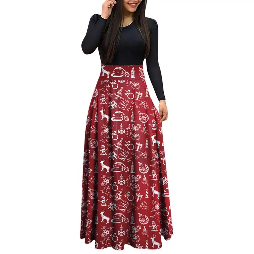 Женское рождественское платье 2021, приталенное весеннее платье с круглым вырезом и цифровым принтом в стиле пэчворк для нового года