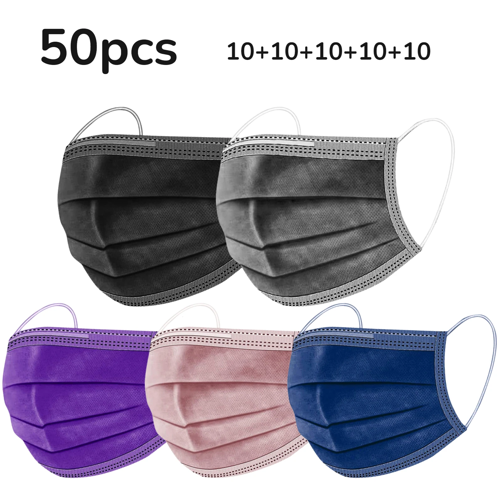 10 шт., одноразовые маски для лица для взрослых, розовый, фиолетовы...
