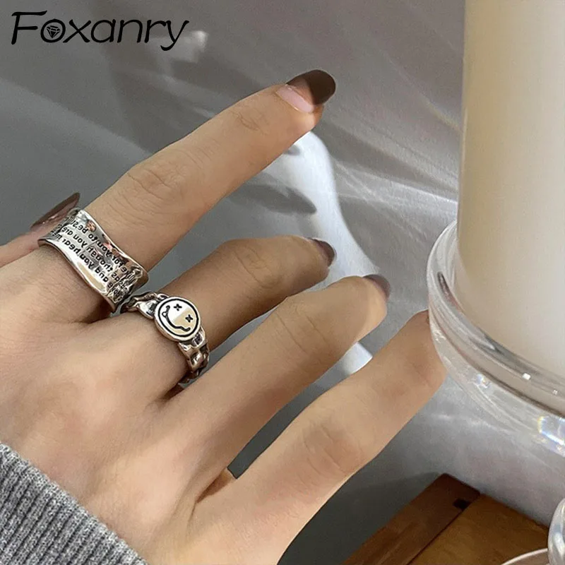 Широкие кольца FOXANRY 925, модные геометрические аксессуары в стиле хип-хоп, винтажные Простые Ювелирные изделия для вечеринок со смайликом