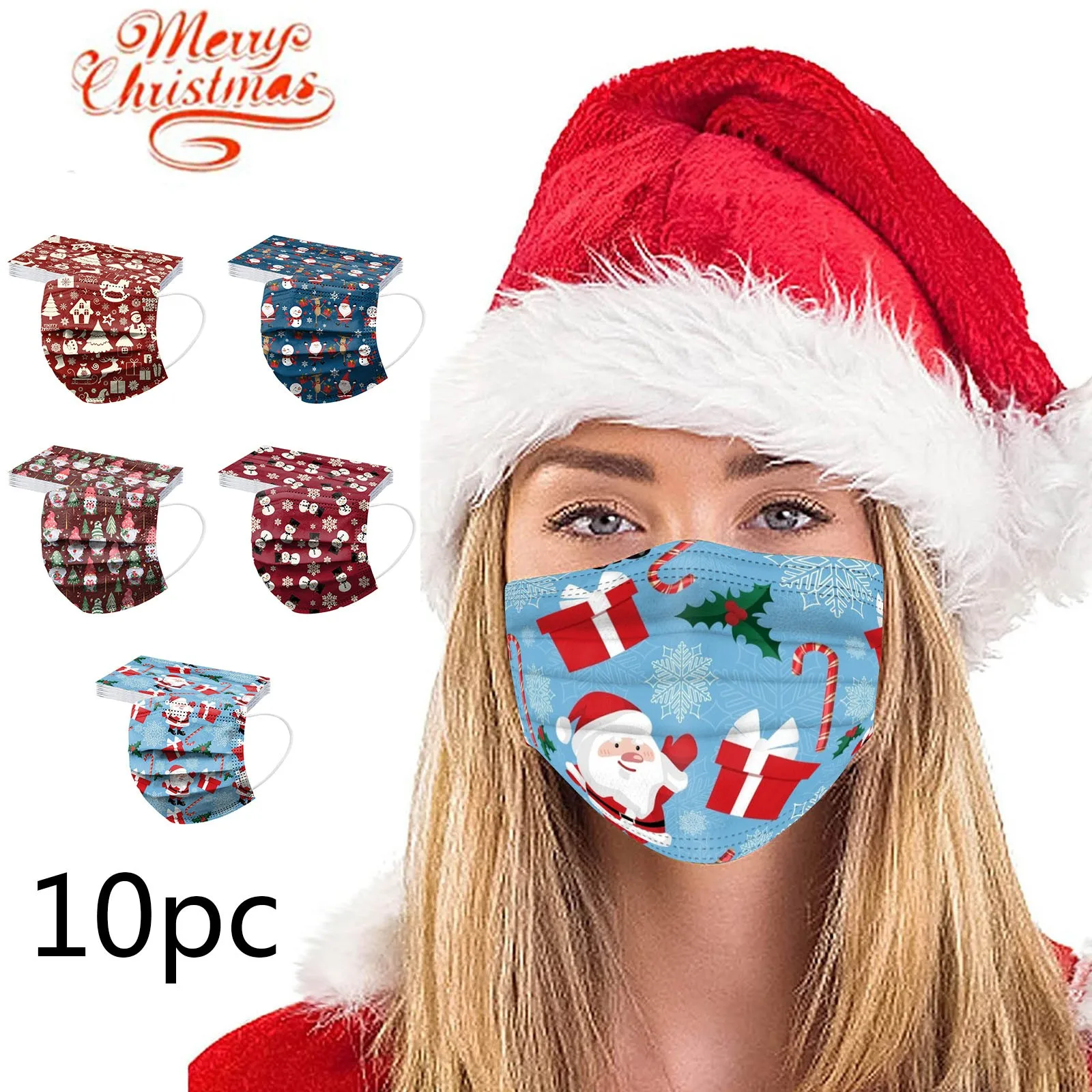 Маска одноразовая с рождественским принтом для взрослых, 3 слоя, 10 шт.