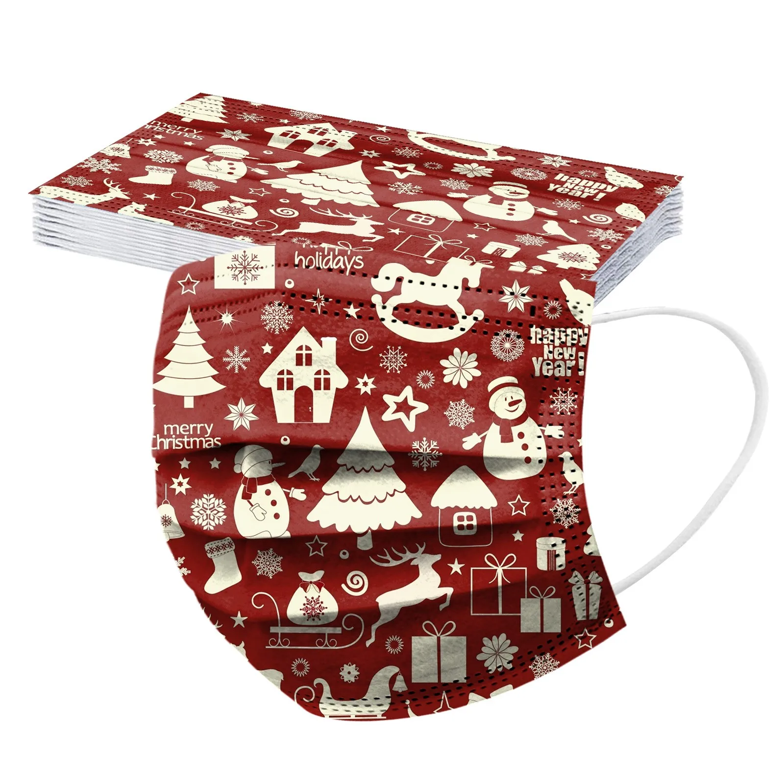 50 штук взрослая Рождественская печатная одноразовая маска промышле...