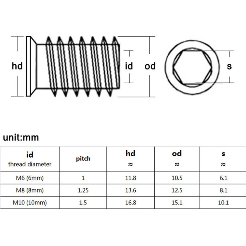 10 шт., шестигранная Встраиваемая гайка для деревянной мебели