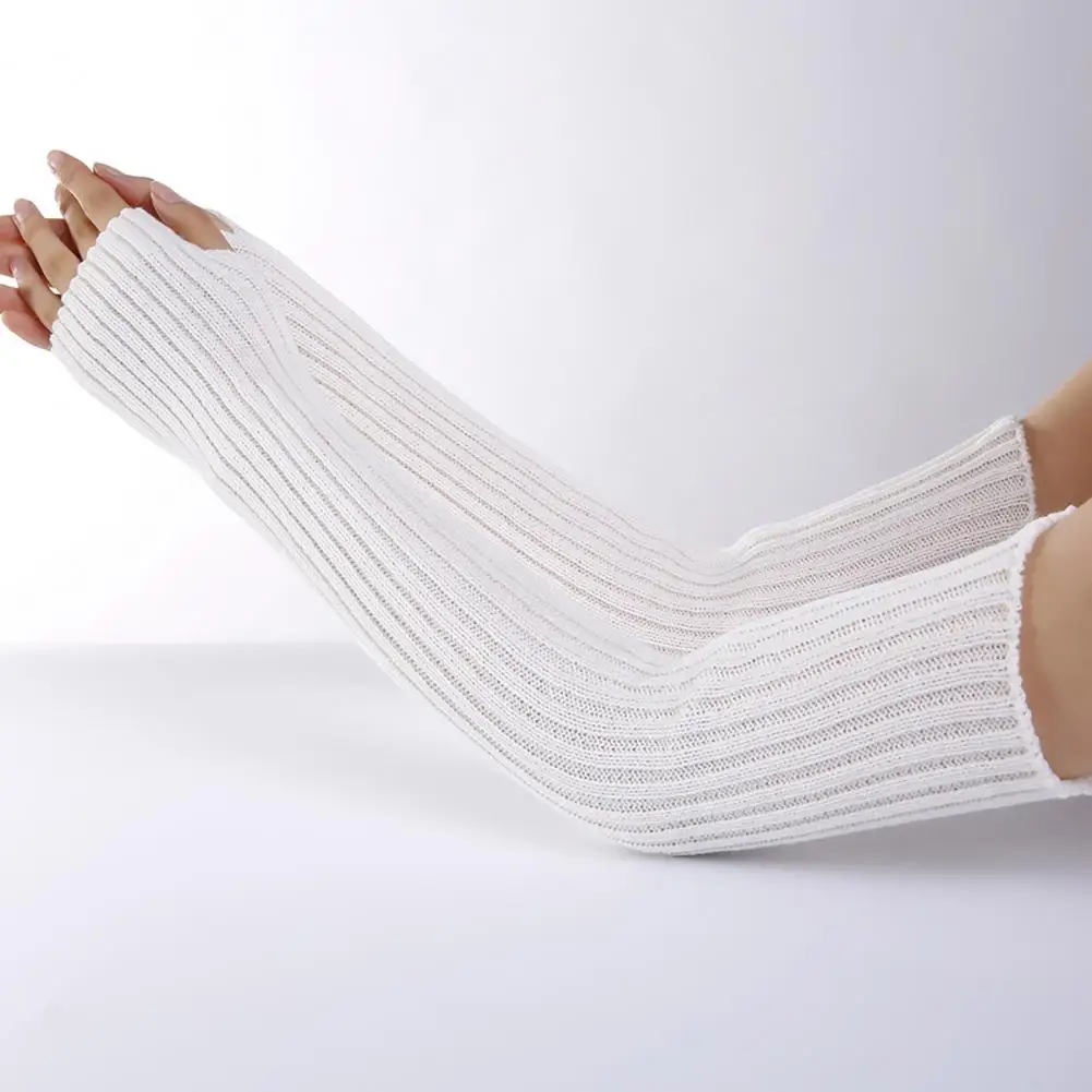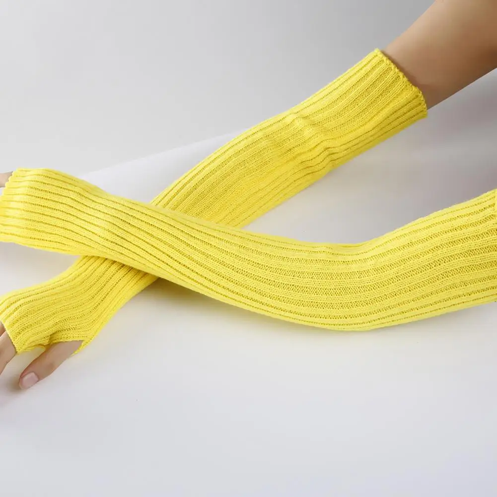Женские вязаные длинные перчатки, мягкие теплые перчатки для девушек, уютные летние эластичные длинные митенки без пальцев для улицы