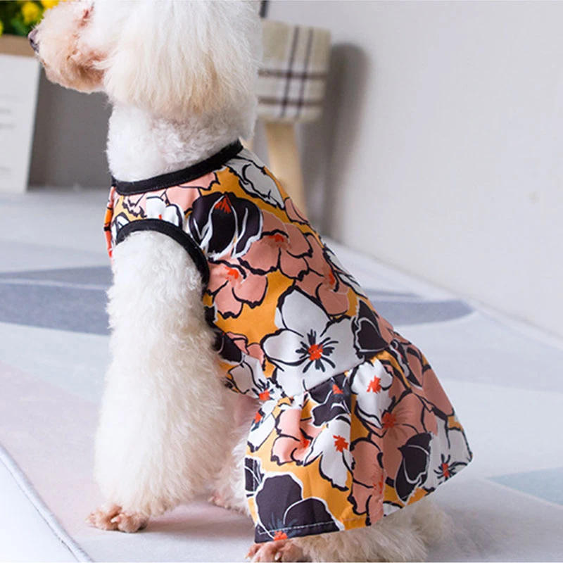 Новая летняя одежда для собак, юбка, платье для собак с цветочным п...