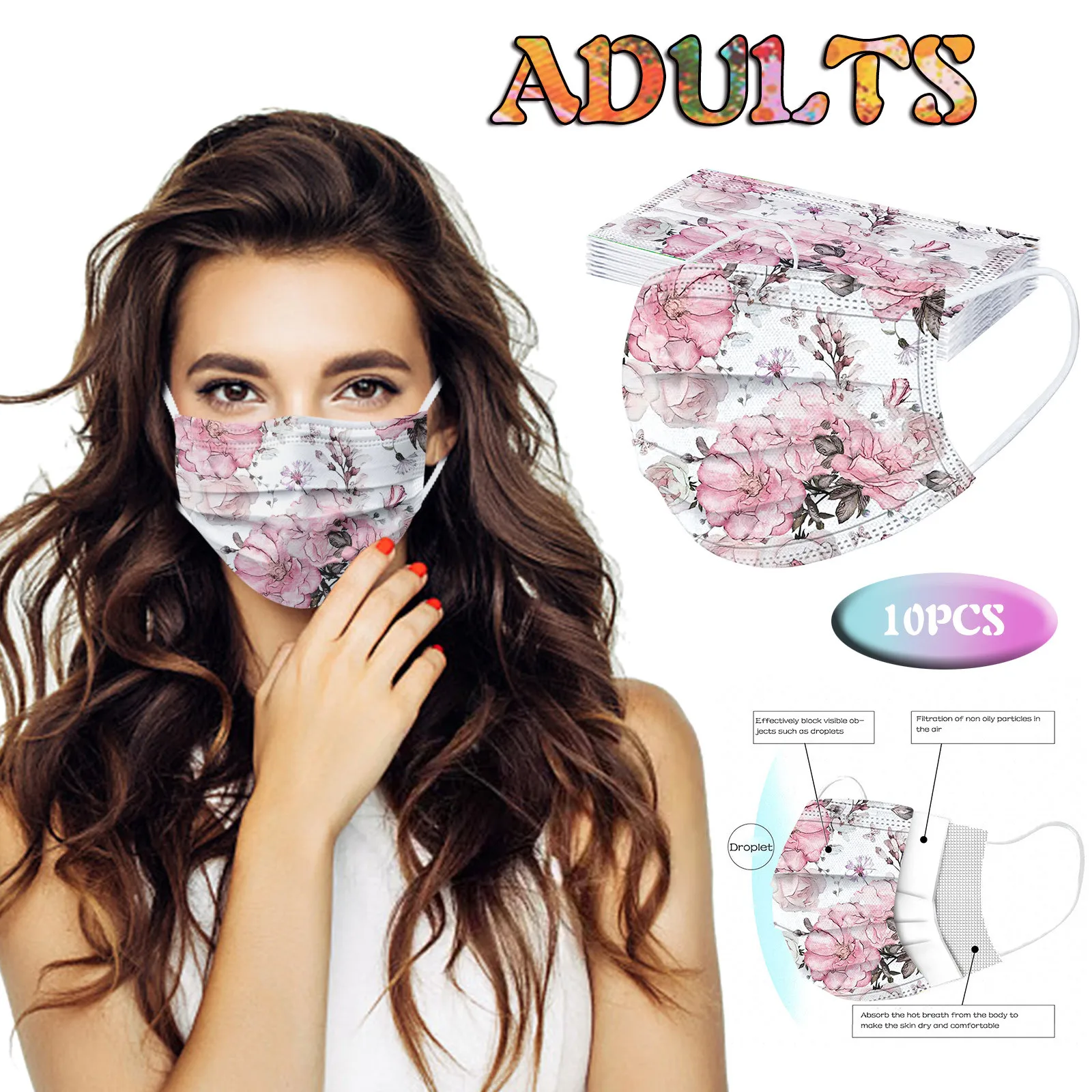 В 3 слоя Нетканая одноразовая маска изготовлена из 3 слоев нетканого материала, Безопасен и безопасен для использования. Дышащий материал и милый Узоры, которые делают его полезным и модным. Специальный 3 слоя из нетканого материала Дизайн, обеспечивает некоторую защиту от пыли, автомобильных выхлопных газов, Пыльца и т. д. эластичная Ушная петля, легко носить и не давит на уши. Маникюрный салон или любые другие области, где может потребоваться защита
