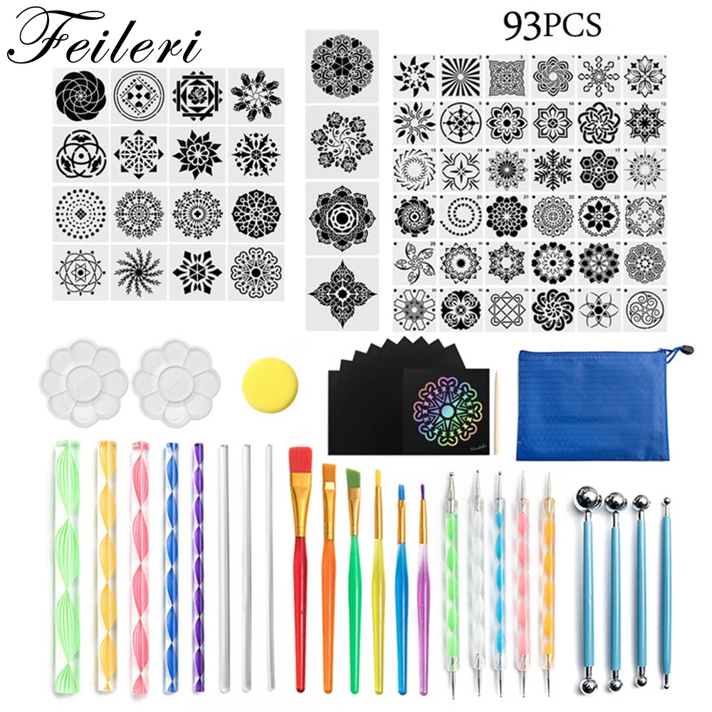 93 шт. набор инструментов для точек с мандалой, шаблон, форма для тиснения, набор точек, точечные ручки, кисть, акриловые стержни, инструменты для рисования своими руками