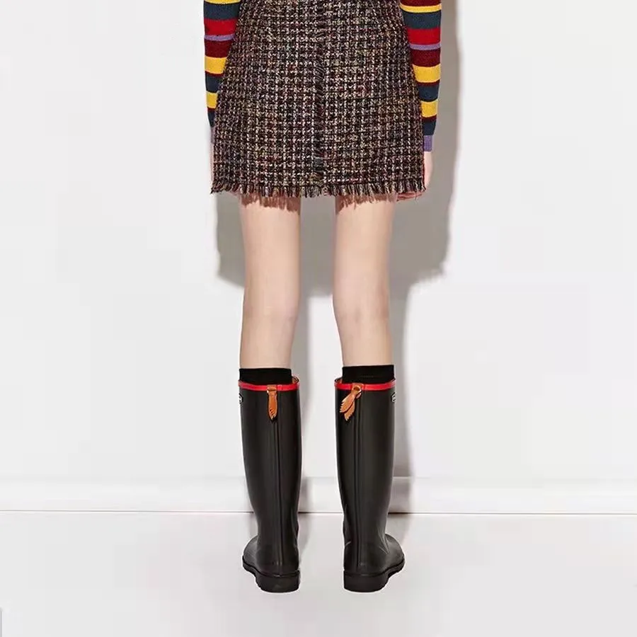 Новый дизайн; Женские резиновые сапоги; Коллекция 2021 года; Модные резиновые сапоги до колена на высоком каблуке; Водонепроницаемая обувь; Женская обувь; Botas De Mujer