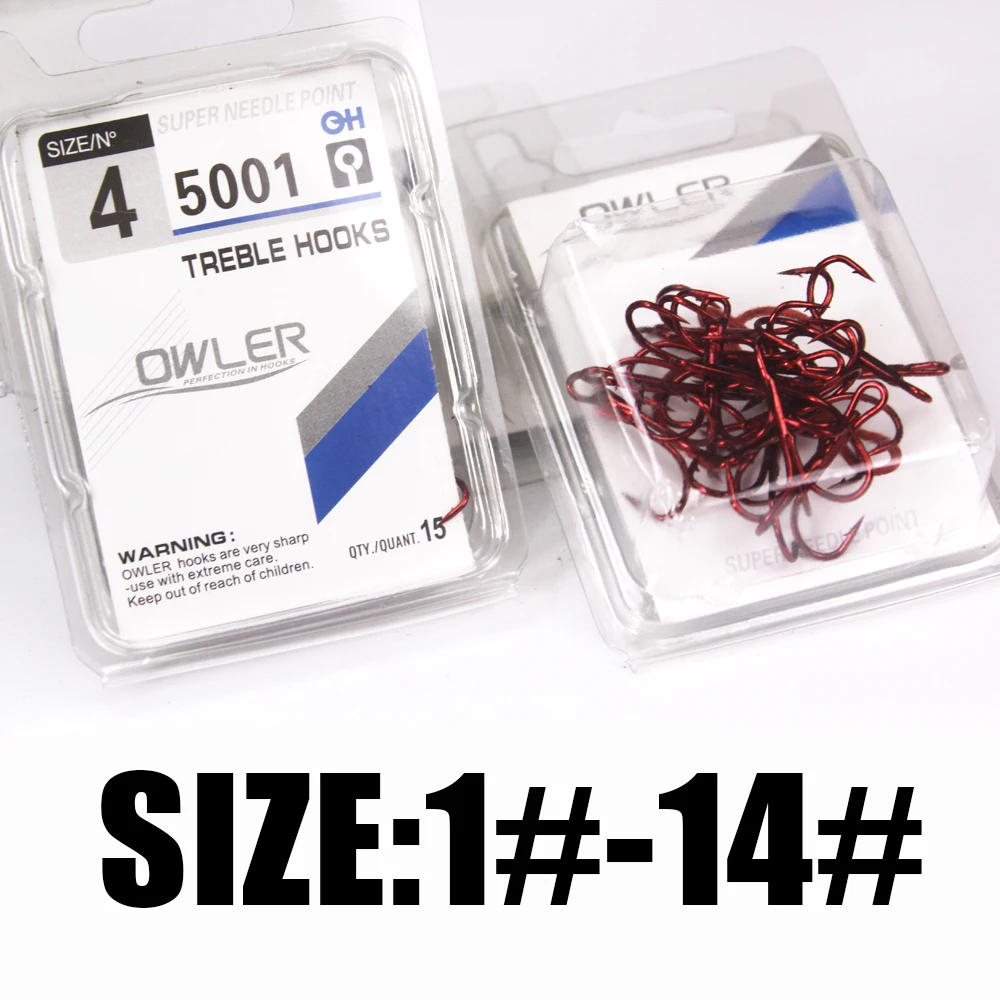 Owler 5001 красные тройные рыболовные крючки, принадлежности для морской рыбалки, вспомогательные крючки с морской головкой, японские тройные рыболовные крючки, круглая рыболовная Тройная футболка