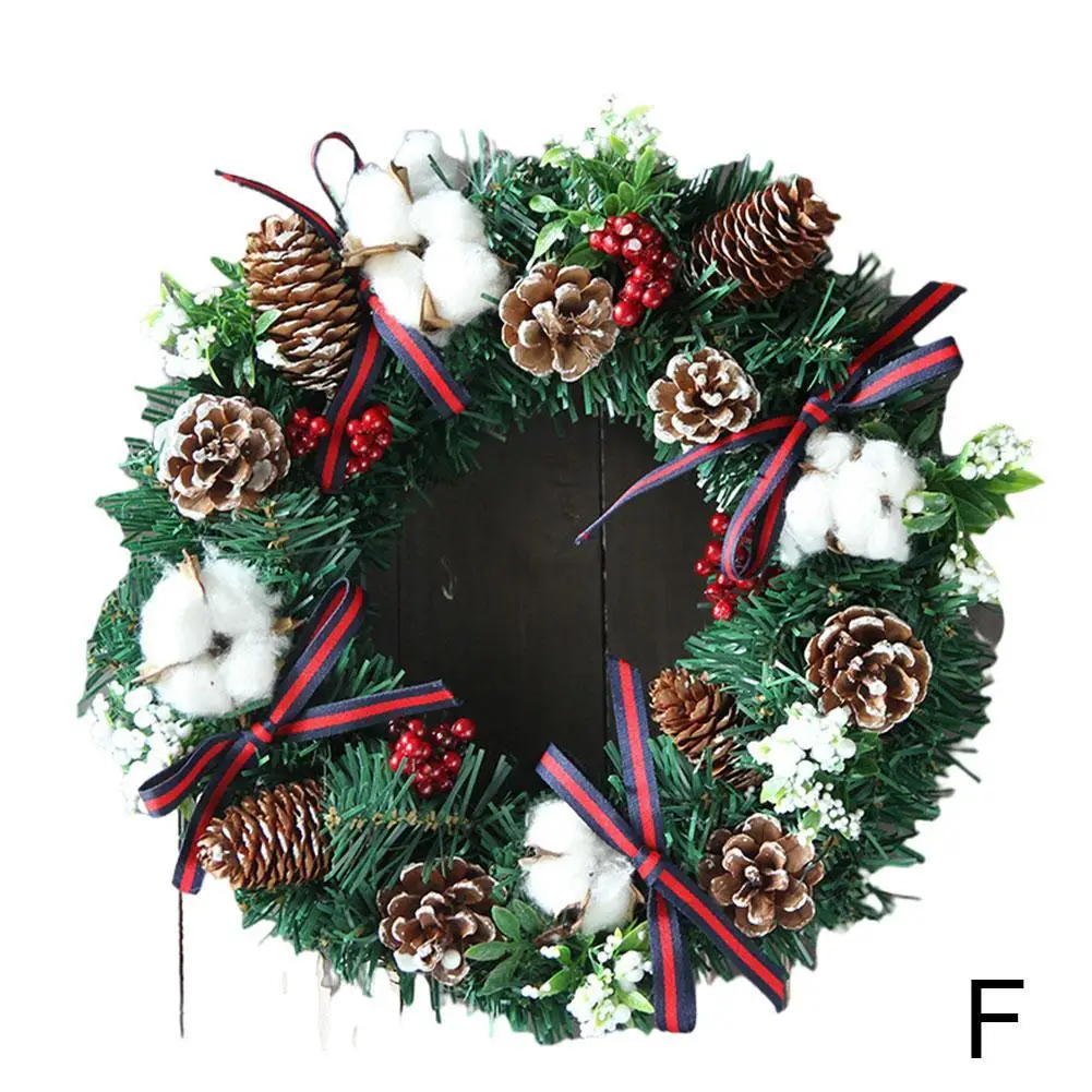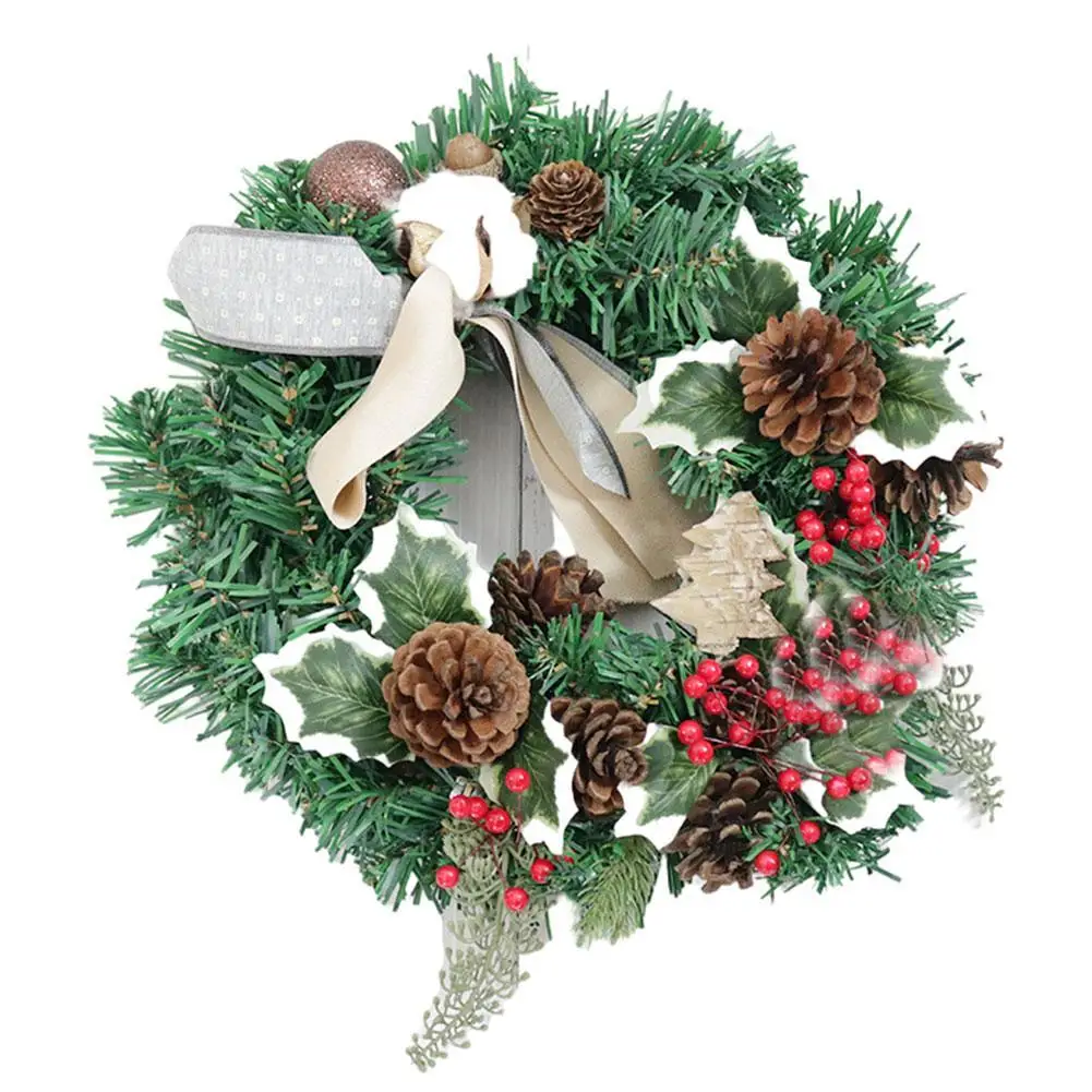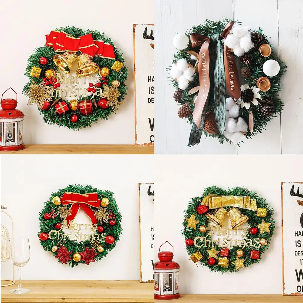 Композиция из венка 30 см, Рождественское украшение, искусственный цветок из ели из ротанга, Рождественский венок, висячая Гирлянда для входной двери и домашней вечеринки