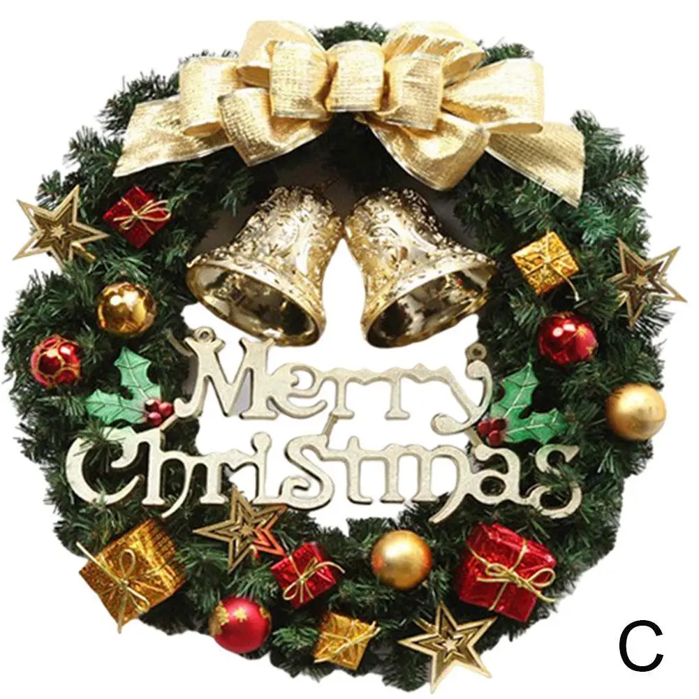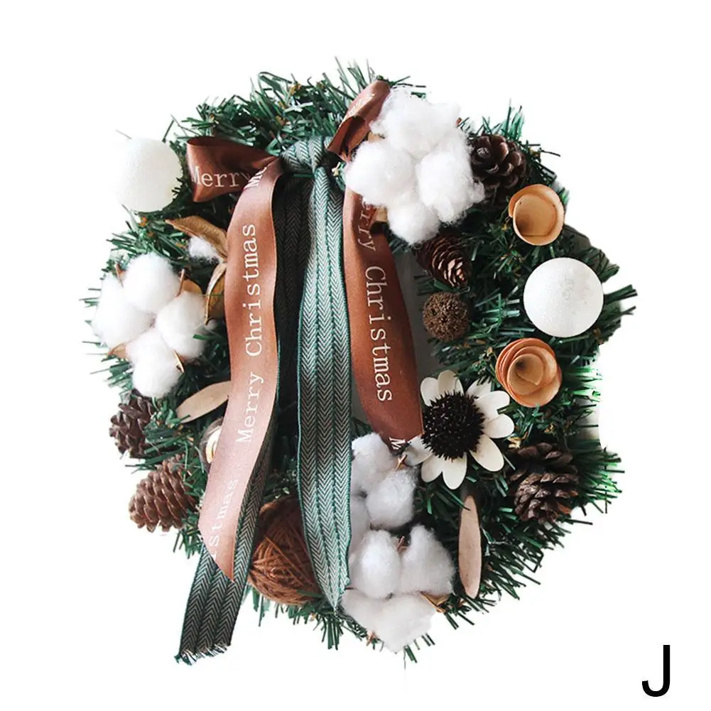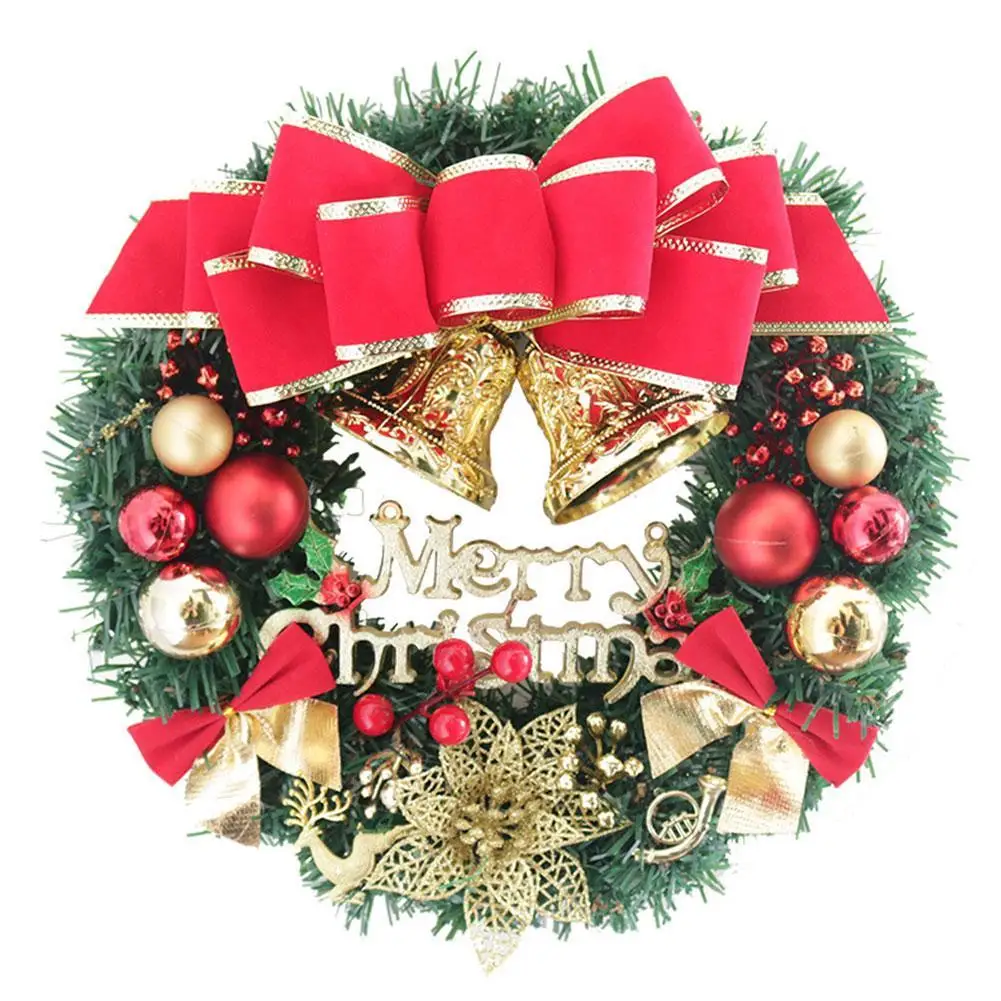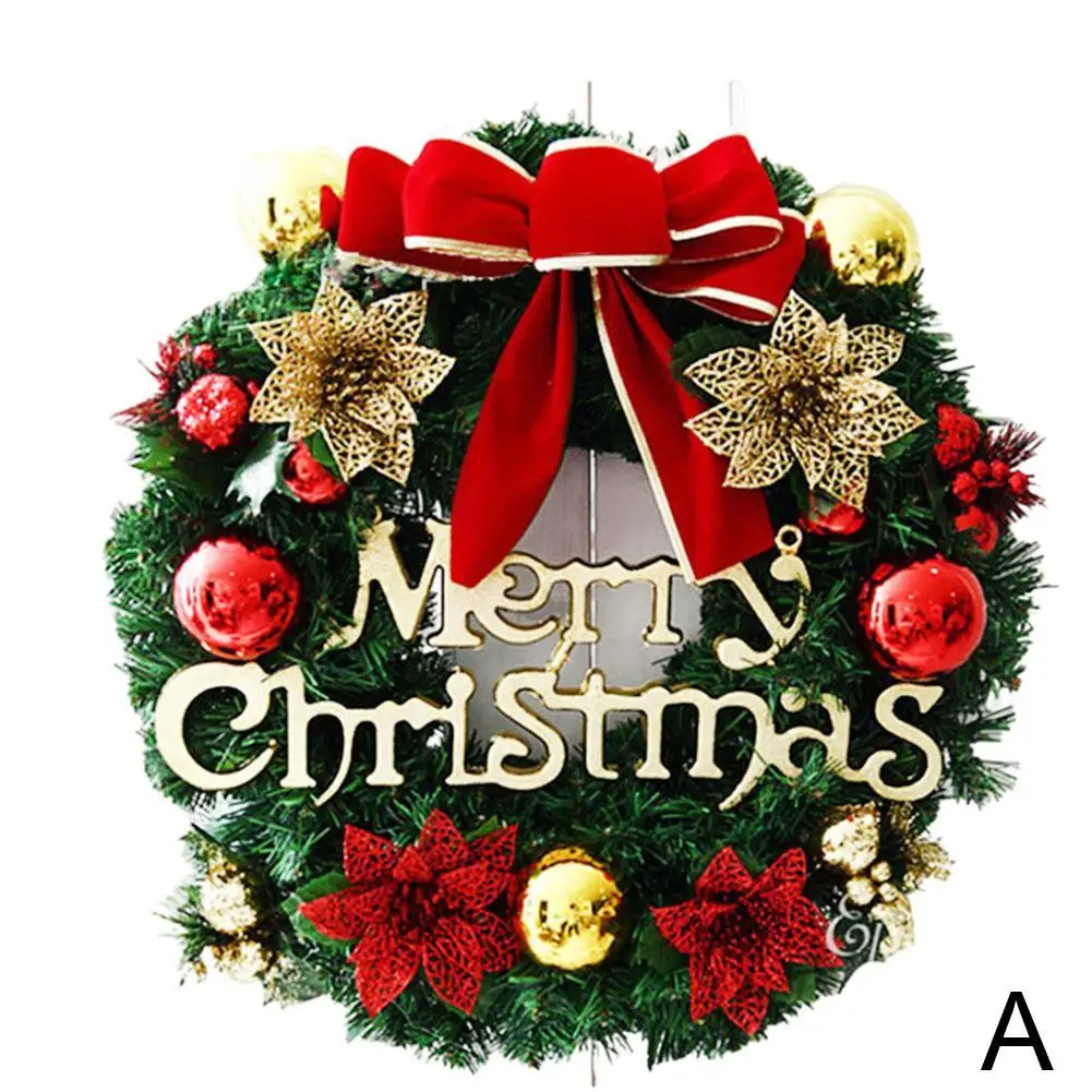 Композиция из венка 30 см, Рождественское украшение, искусственный цветок из ели из ротанга, Рождественский венок, висячая Гирлянда для входной двери и домашней вечеринки