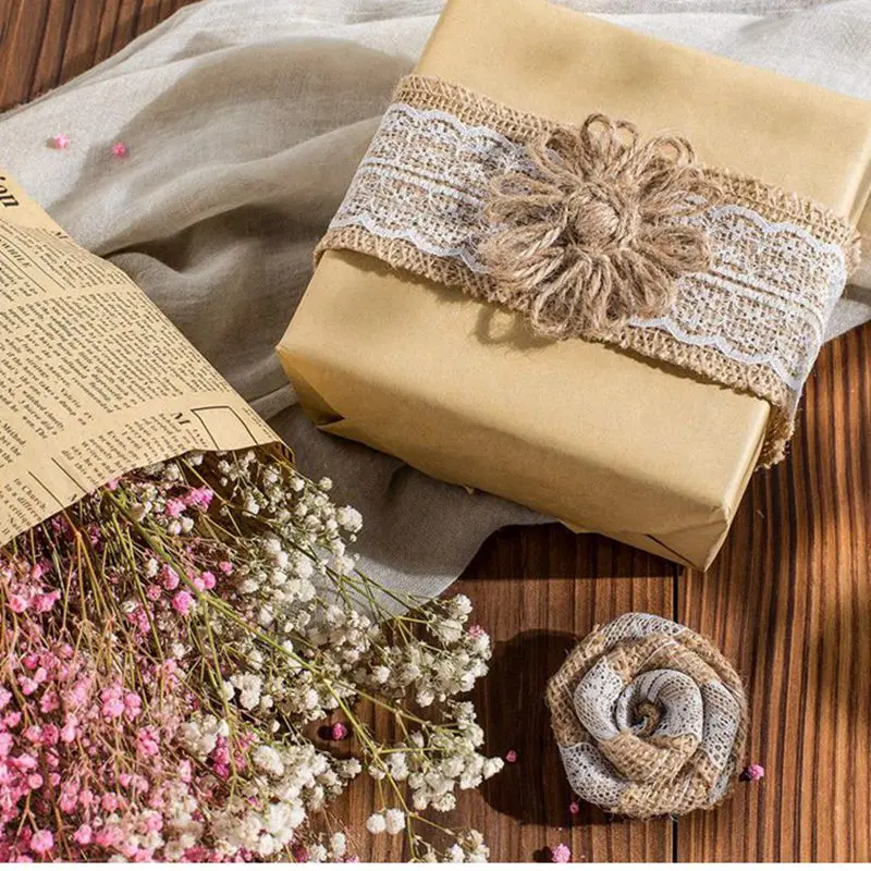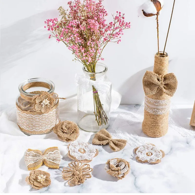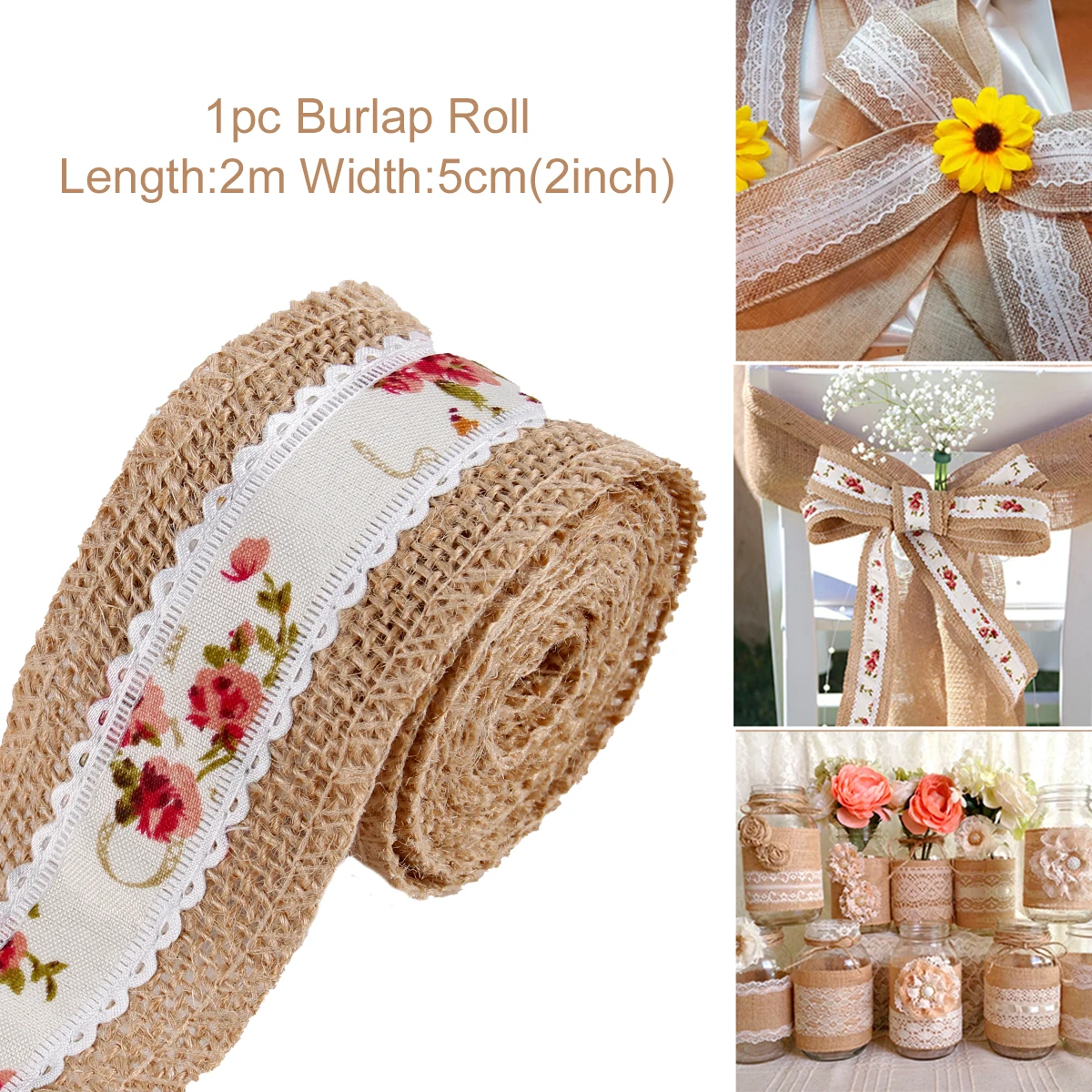 Лента из натурального джута с белой кружевной отделкой, свадебное украшение в деревенском стиле сделай сам для свадьбы, банта, рукоделия, 2 м