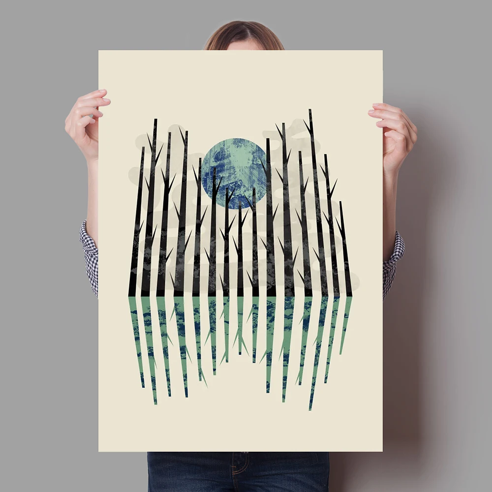 Настенный плакат с изображением леса, деревьев, Луны, минималистичный скандинавский домашний декор для гостиной, спальни