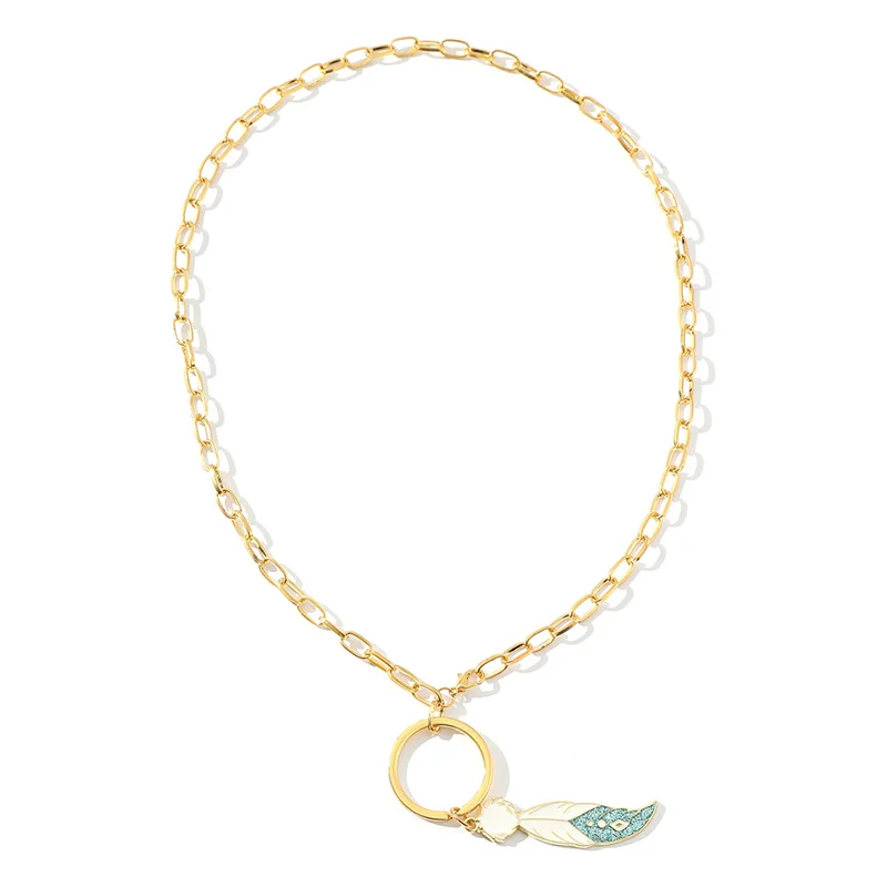 Светящееся ожерелье Game Genshin Impact Barbatos Venti, Двухслойное ожерелье с подвеской глаз Бога, элементами ветра, перьями, ювелирные изделия в подарок