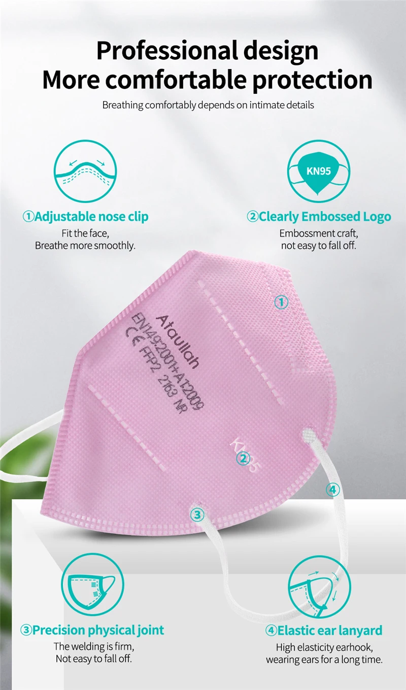 Маска для лица одноразовая дышащая, 5 слоев, fpp2 kn95
