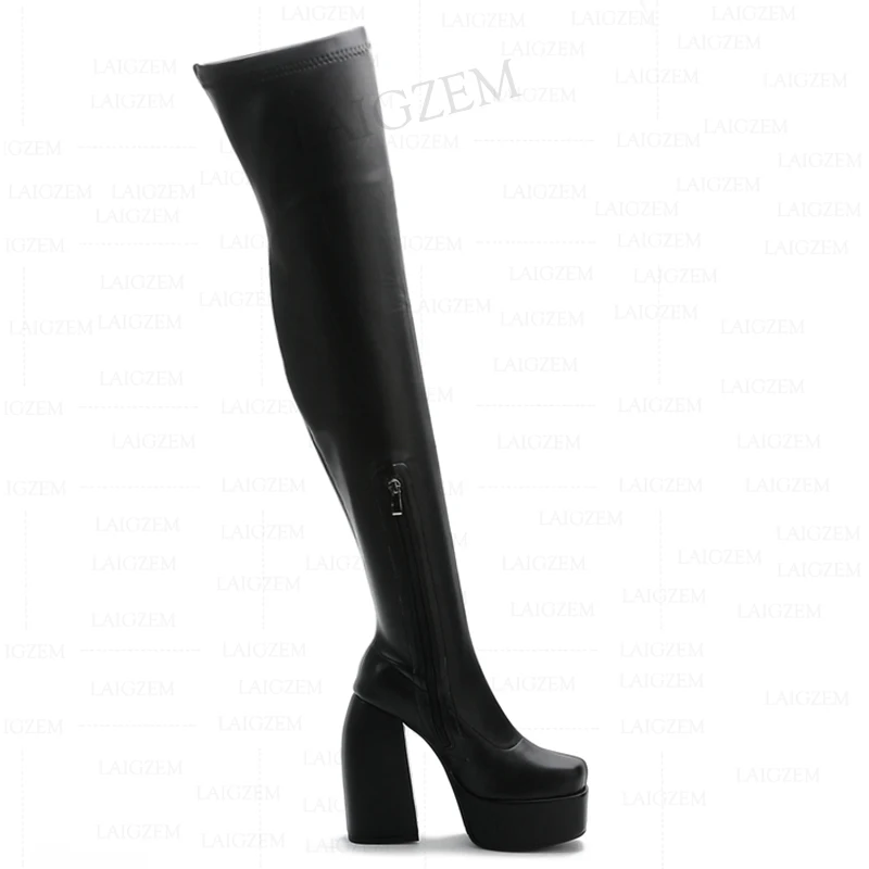 LAIGZEM/женские ботфорты выше колена высокие сапоги с боковой молнией на платформе с высоким блочным каблуком женская обувь женские большие размеры 33, 39, 41, 43