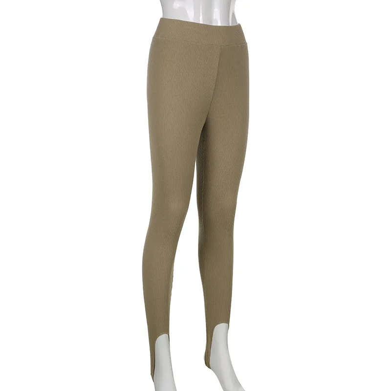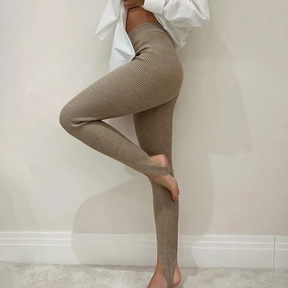 Женские трикотажные леггинсы в рубчик, Модные Бежевые хлопковые баз...