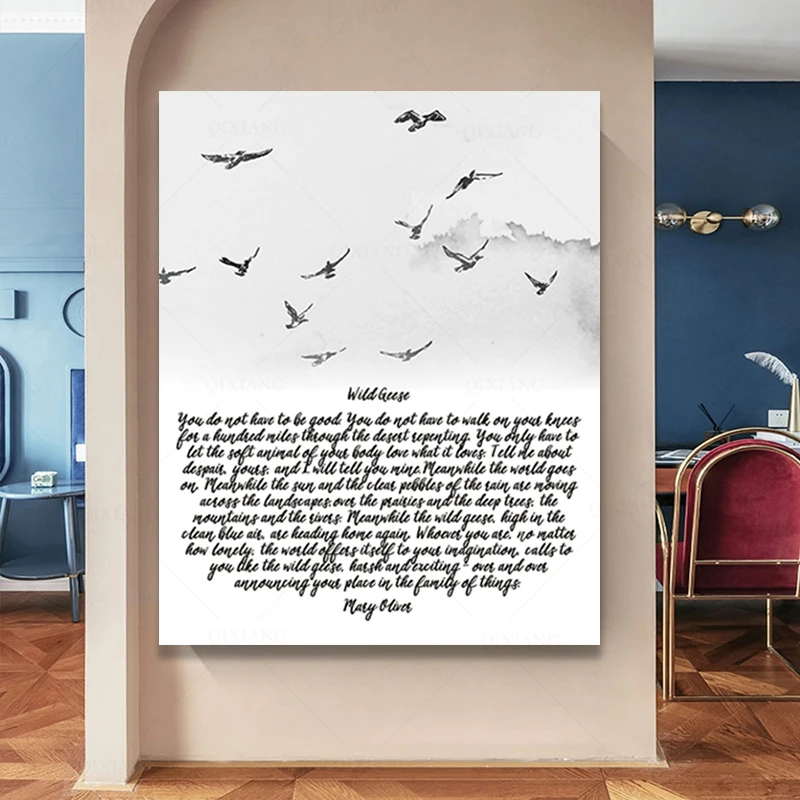 Мэри Оливер, поэма, дикий Джиз, печать, чернила, птицы, акварель, искусство, холст, картина, фермерский Настенный декор, поэзия, искусство