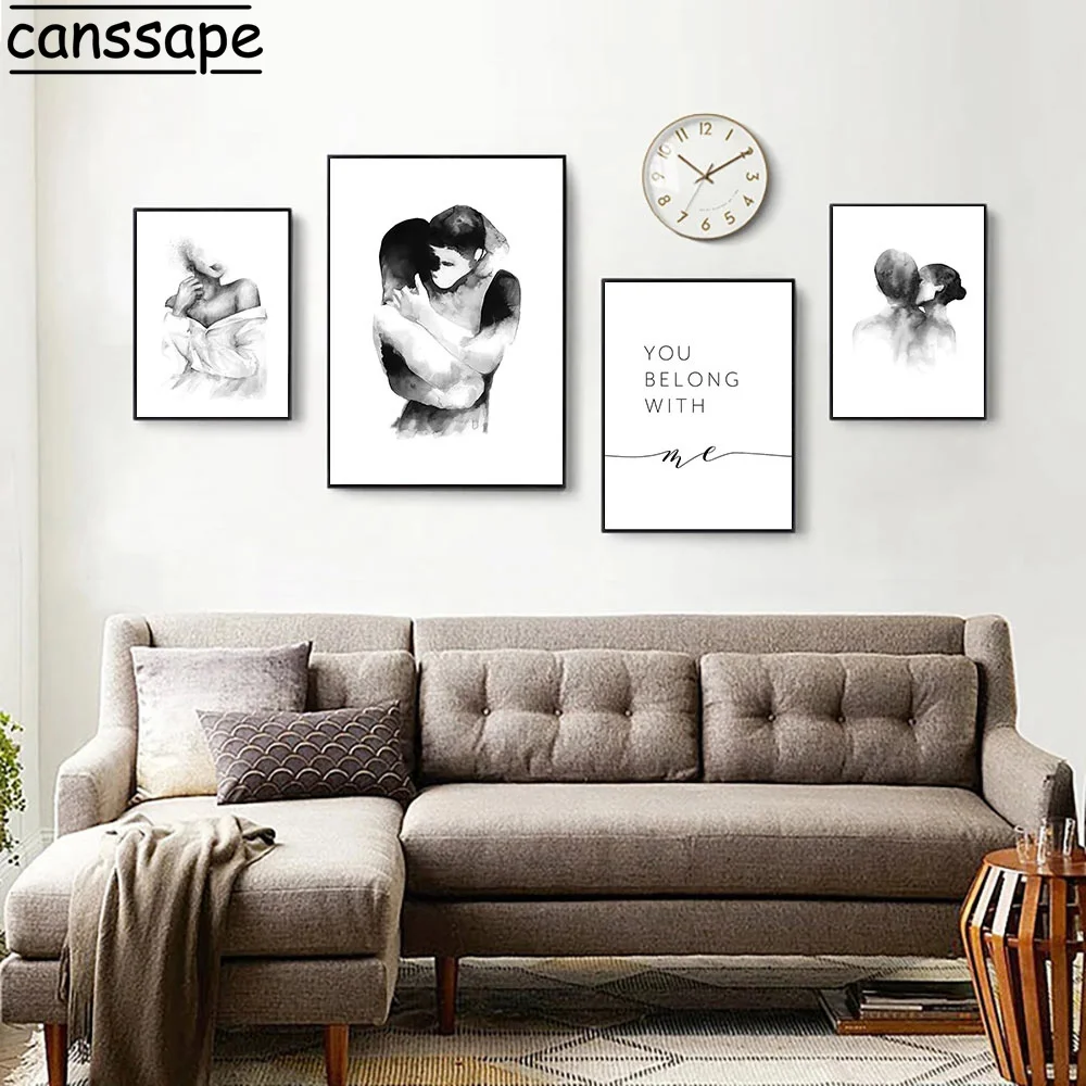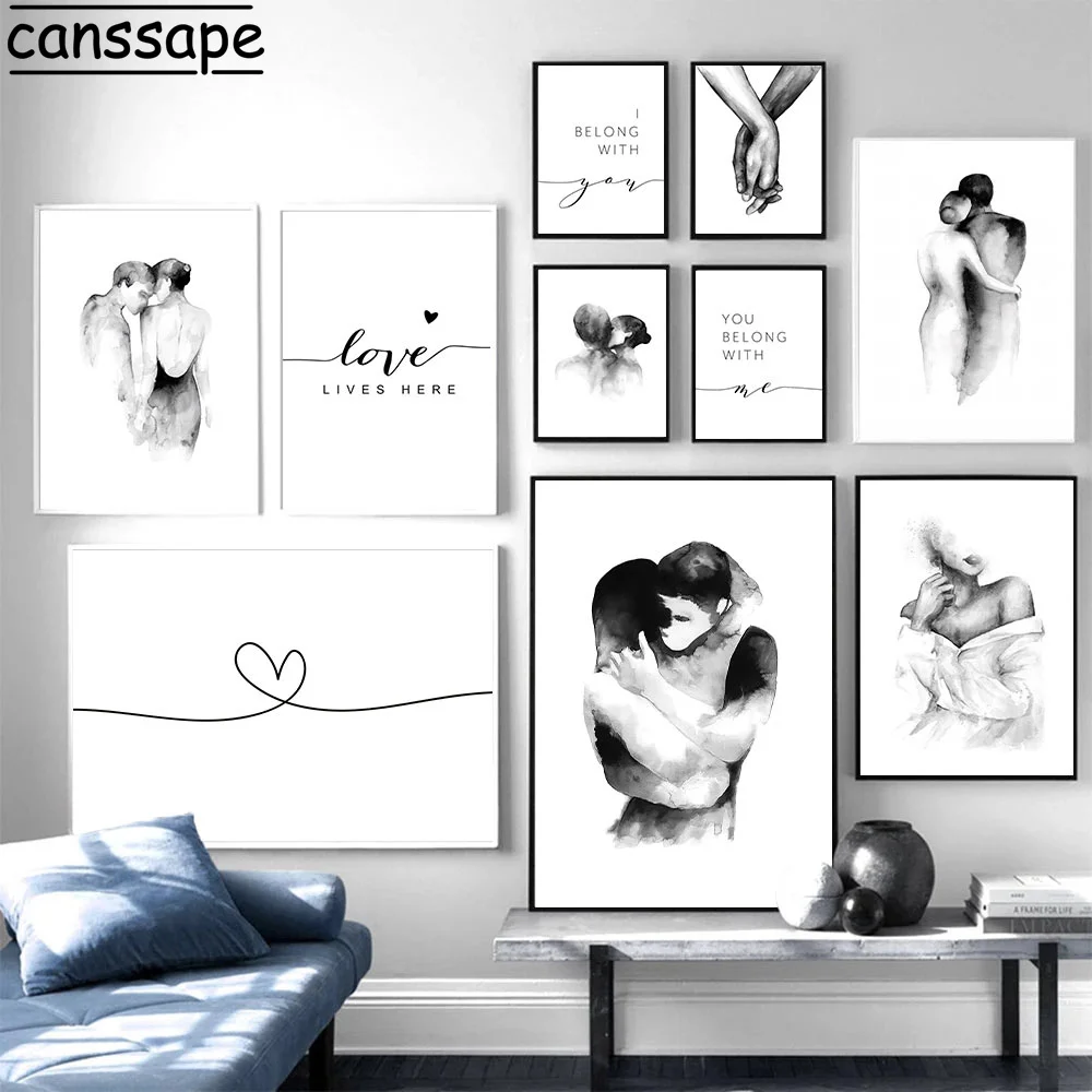 Черно-белая холст Художественная живопись парные плакаты с удержанием рук минималистичные скандинавские настенные картины украшение для гостиной