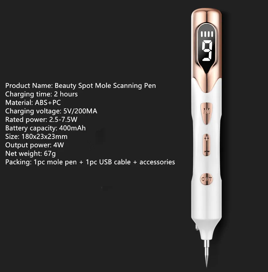 Безопасная эффективность: Удалите пятно, не сжигая кожу. Использование высокотехнологичных, электрических ионных карбонатных функций для мгновенной подметки веснушек, возрастных пятен и т. д. удаление может быть достигнуто быстро без кровотечения, безопасных и побочных эффектов медицинских косметических результатов. Новое обновление: 9 уровней регулировки прочности для различных кож может очистить вашу кожу проблемы шаг за шагом. ЖК-дисплей показывает уровень работы и уровень заряда батареи. Прожектор обеспечивает удобство при эксплуатации, что поможет вам лучше управлять устройством. Перезаряжаемый дизайн с защитой от перезаряда делает долгий срок службы Как использовать: после установки головного аксессуара, подключите питание, запустите продукт, отрегулируйте положение шестерни, нажмите кнопку OUT для использования продукта, И необходимо связаться с продуктом кожи, чтобы иметь эффект. Обтекаемый корпус, легкий и портативный, простой в использовании, без тряски рук. Интенсивность работы 9 зубчатых колес может регулироваться, чтобы удовлетворить ваши требования к обработке различных проблем с лицом. Уникальный Электрический ионно-ионный метод лечения, не оставляя пациента в процессе существования электрического тока, без боли, без кровотечения. Идеально подходит для салонов красоты, пластиковых больниц и домашнего использования.