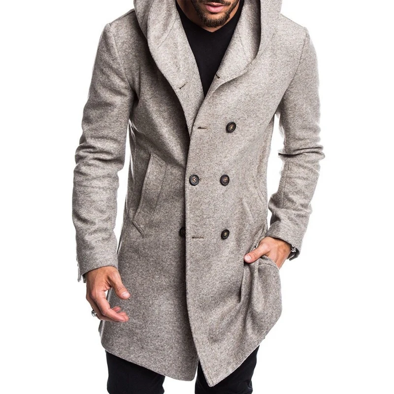 Модный мужской длинный Тренч, куртка из смешанной шерсти, пальто, весенняя одежда с длинным рукавом, повседневные однотонные мужские пальто и куртки