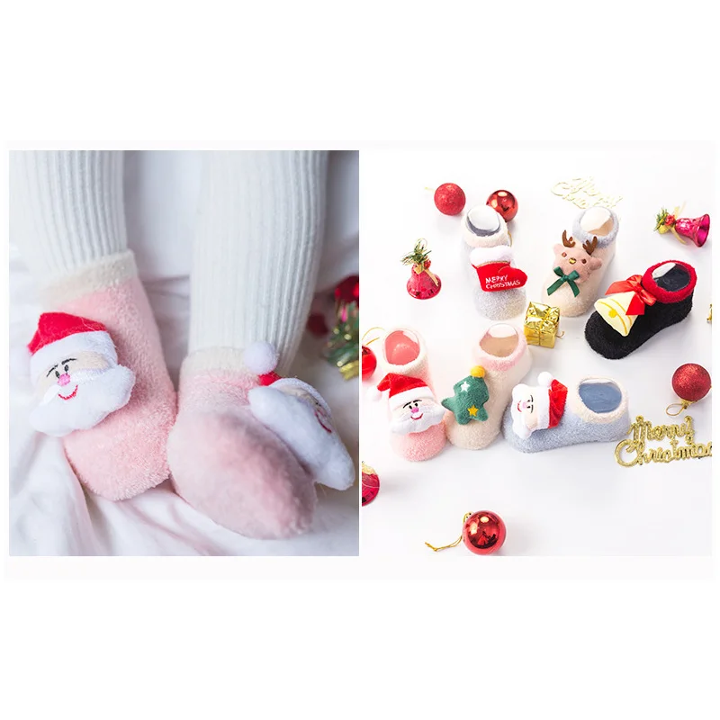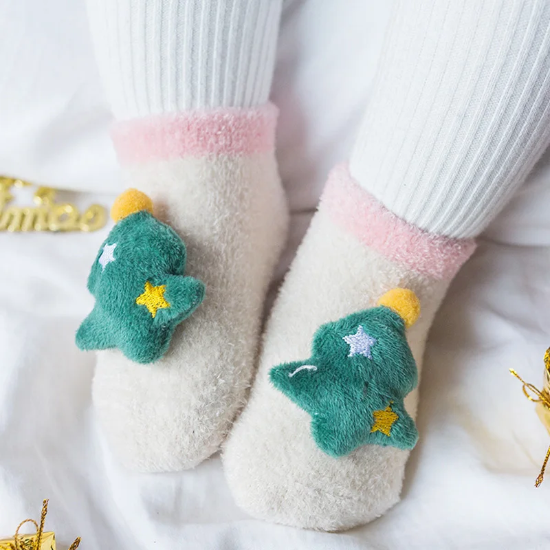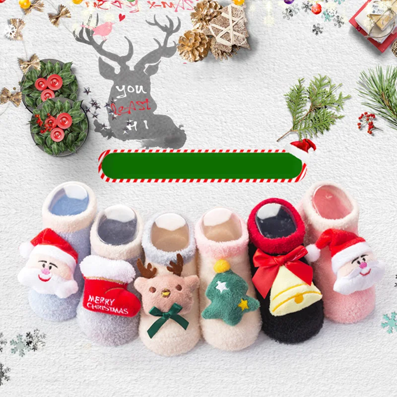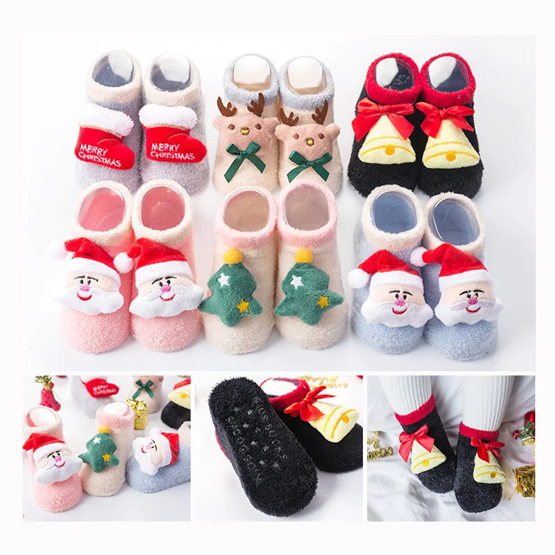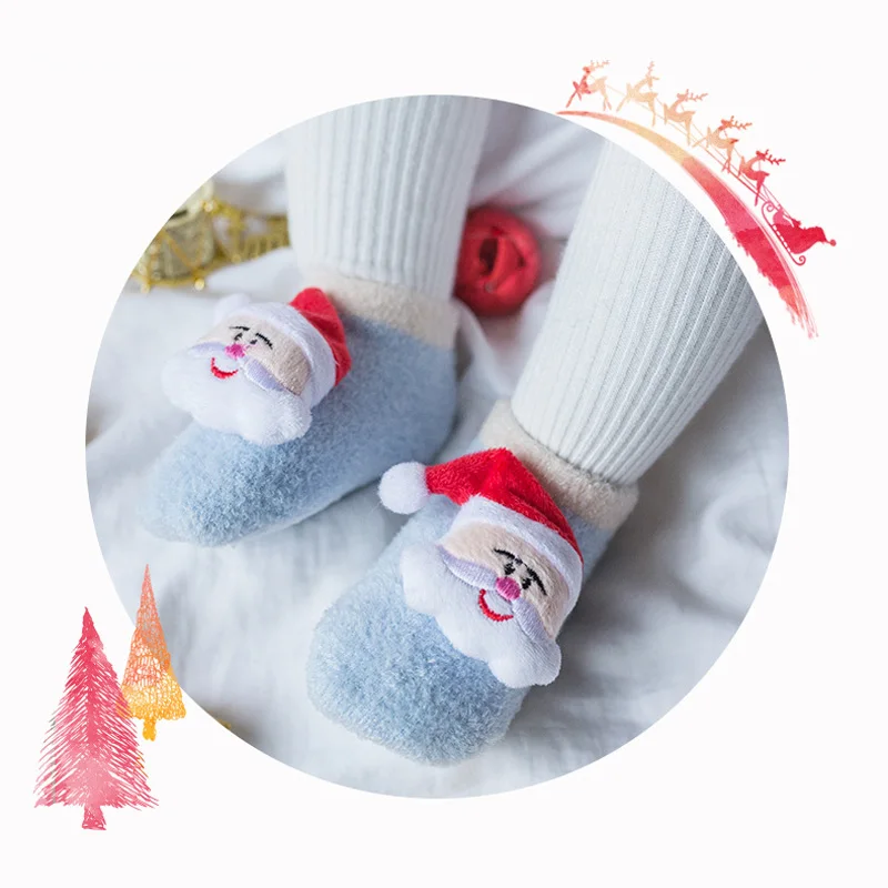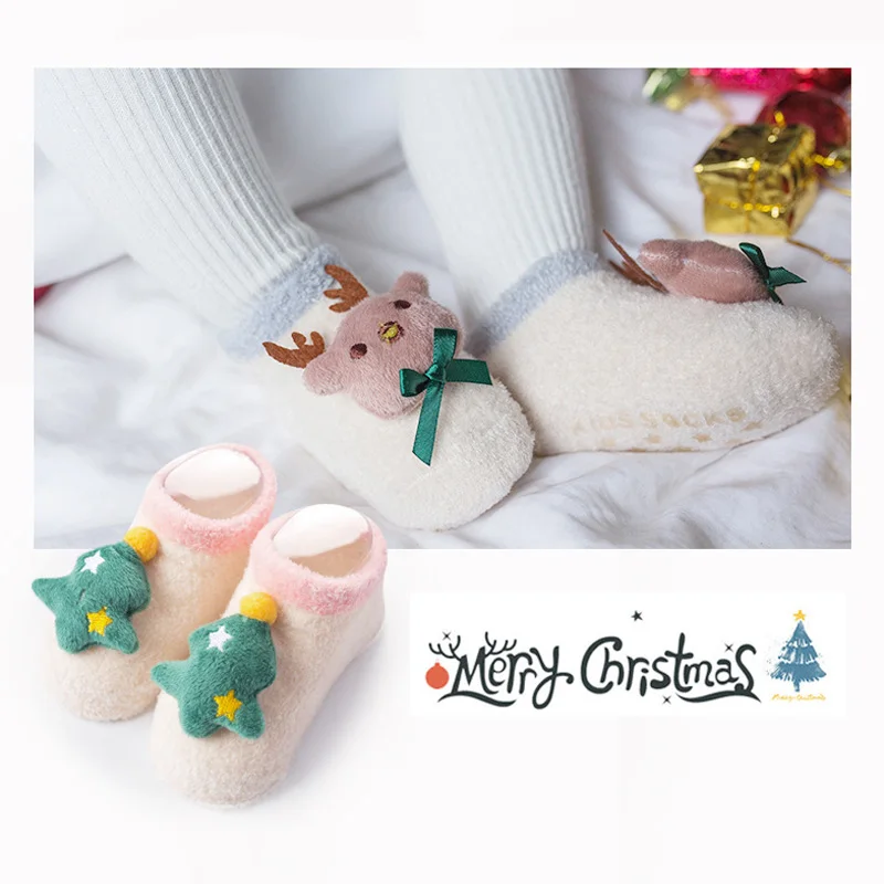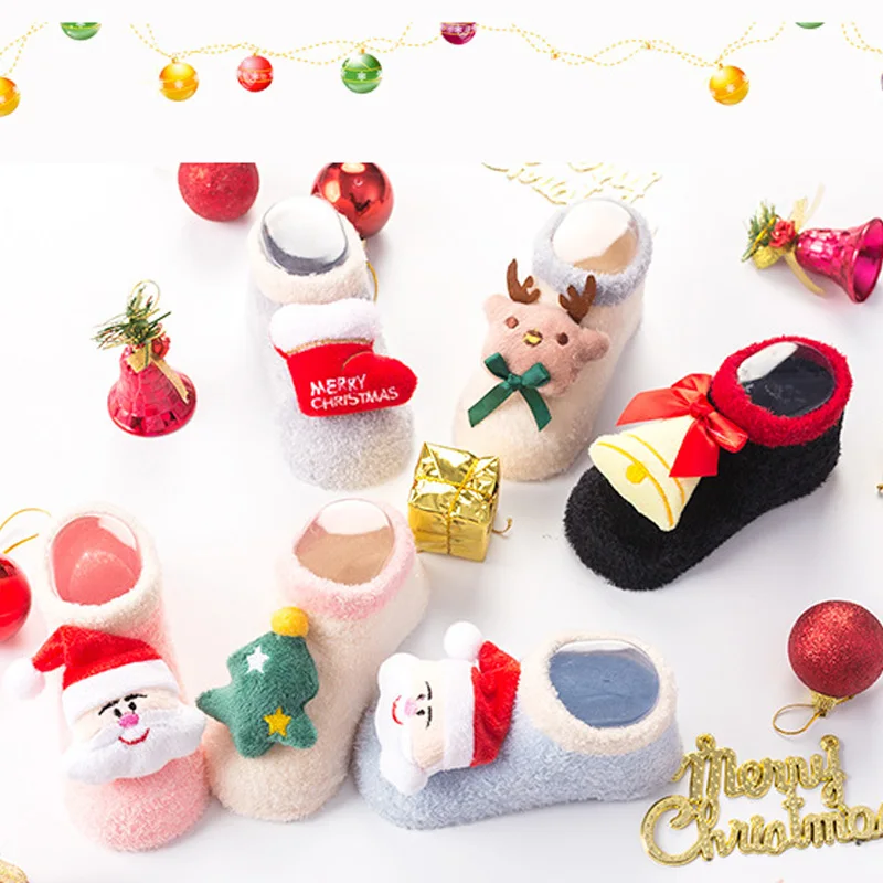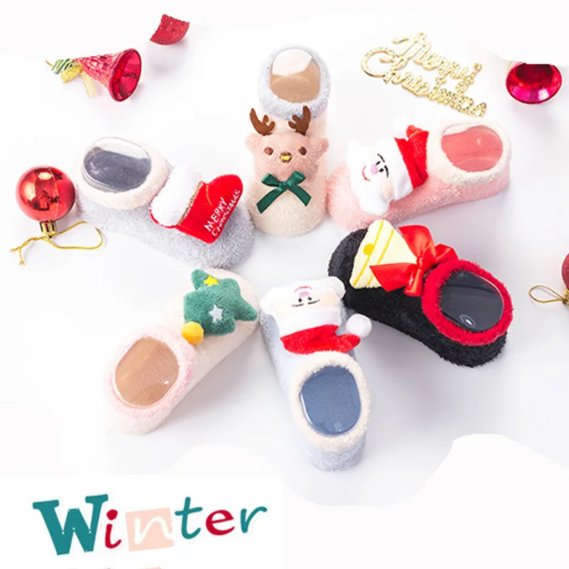 Носки для новорожденных, рождественские Нескользящие короткие носки для малышей, зимние Утепленные теплые носки для младенцев, Мультяшные носки для девочек и мальчиков от 3 лет