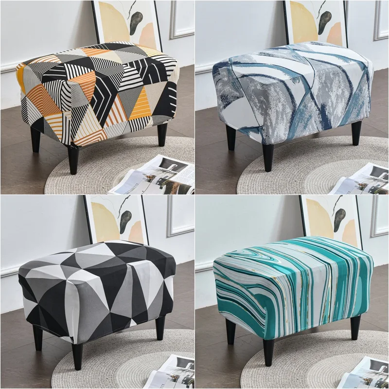 Геометрические чехлы с оттоманкой, прямоугольные чехлы из спандекса для ног, полноразмерные Чехлы для оттоманки, чехол для крыльев стула, кожаные чехлы
