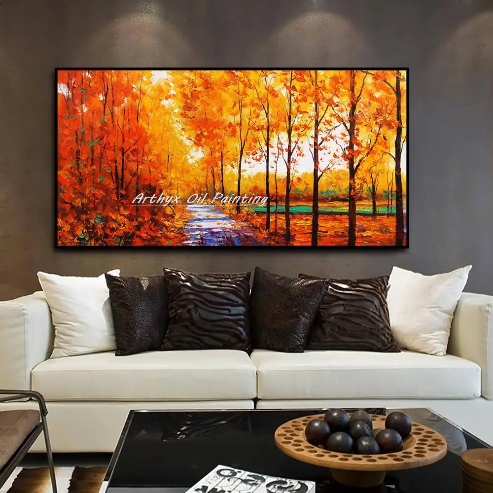 Arthyx ручная роспись желтый лес пейзаж картина маслом на холсте Ручная работа абстрактное дерево Картина Настенная живопись для домашнего офиса Декор